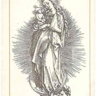 Print, Lithograph, Paper, Ink, Martin Schongauer, Schongauer, Martin, Albrecht Durer, Durer, Albrecht, Print, Lithograph, Paper, Ink, Mary, Jesus, Revelation, Moon, Baby