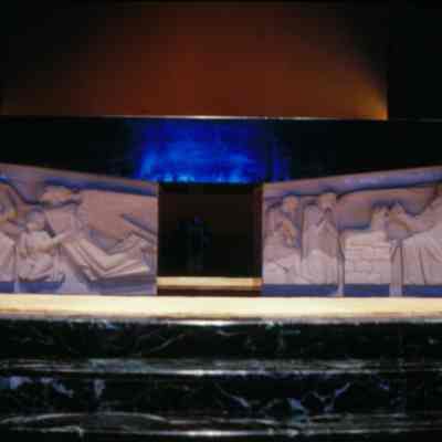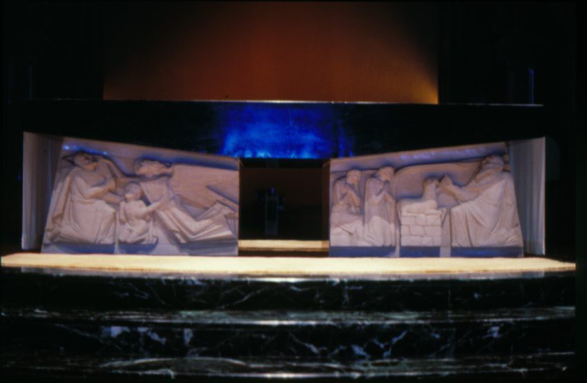 Notes: Depicts the four sacrifices of the Old Testament which now "support" Christ's sacrifice of the New Testament.
