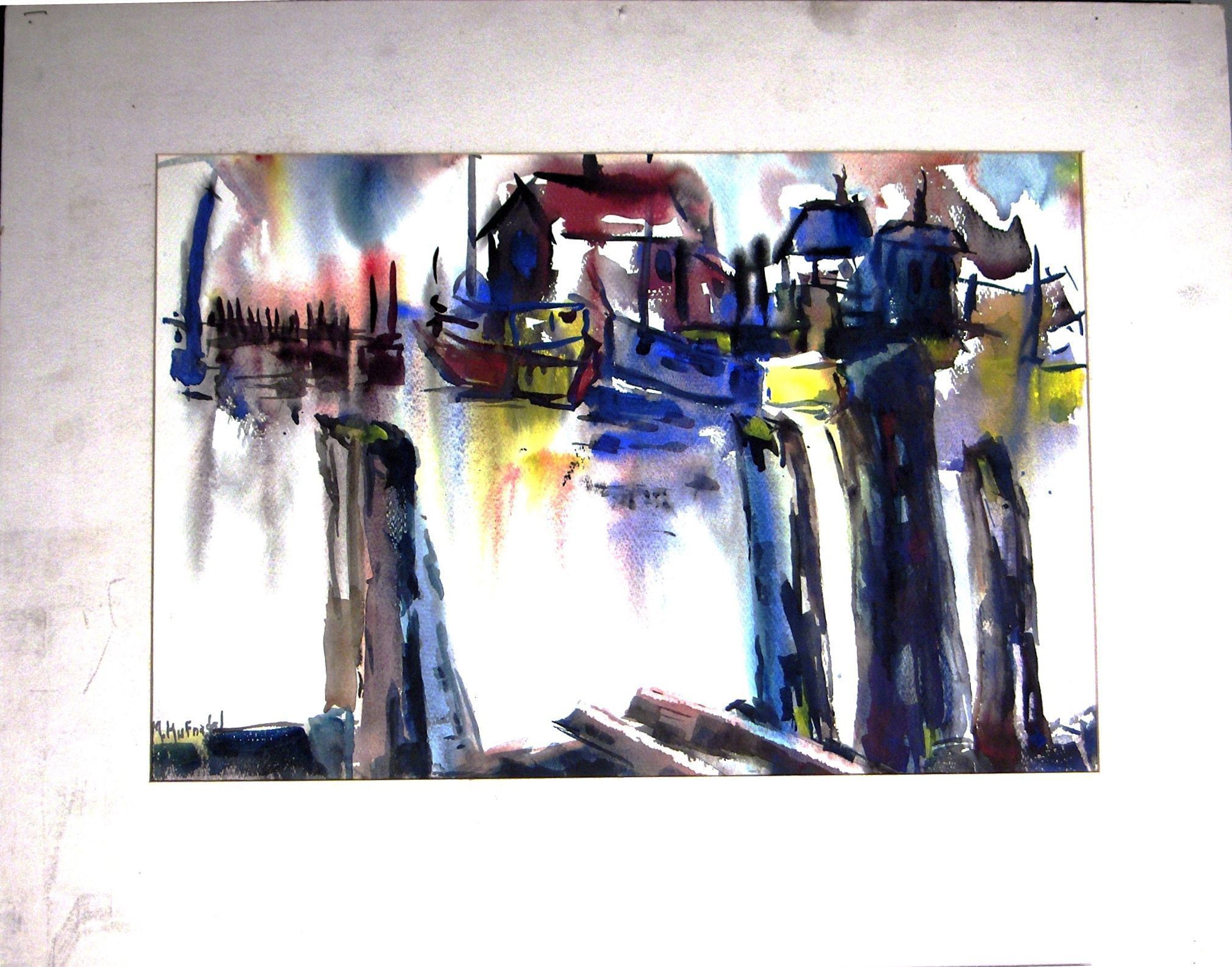 Art, Painting, Watercolor, Art, Painting, Watercolor, Wharfs, Marinas, Bays, Docks, Boats, Oceans, Water