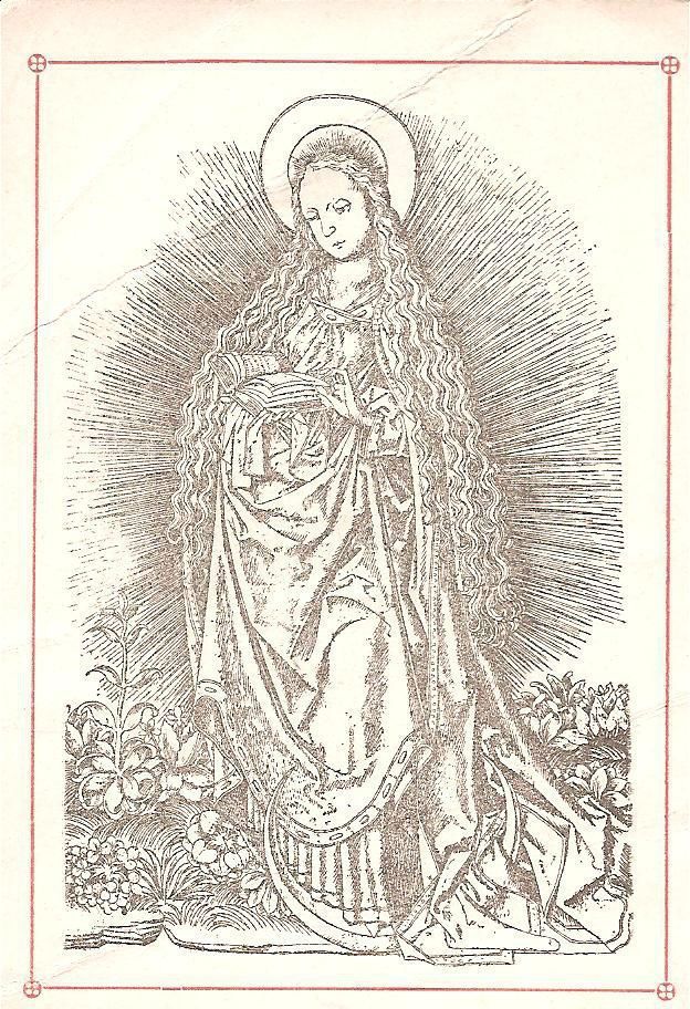 Ink, Paper, Print, Lithograph, Schongauer, Martin, Martin Schongauer, Schongauer, Albrecht Durer, Durer, Albrecht, Durer, Ink, Paper, Print, Lithograph, Prayer Cards, Religious, Religious Subject Matter, Mary, Revelation, Flowers, Moon