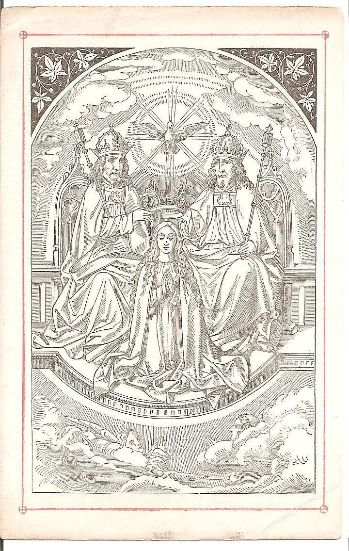 Ink, Paper, Print, Lithograph, Schongauer, Martin, Martin Schongauer, Schongauer, Albrecht Durer, Durer, Albrecht, Durer, Ink, Paper, Print, Lithograph, Prayer Cards, Religious, Religious Subject Matter, Mary, Queen, Heaven, Holy Trinity, Angels, Crown