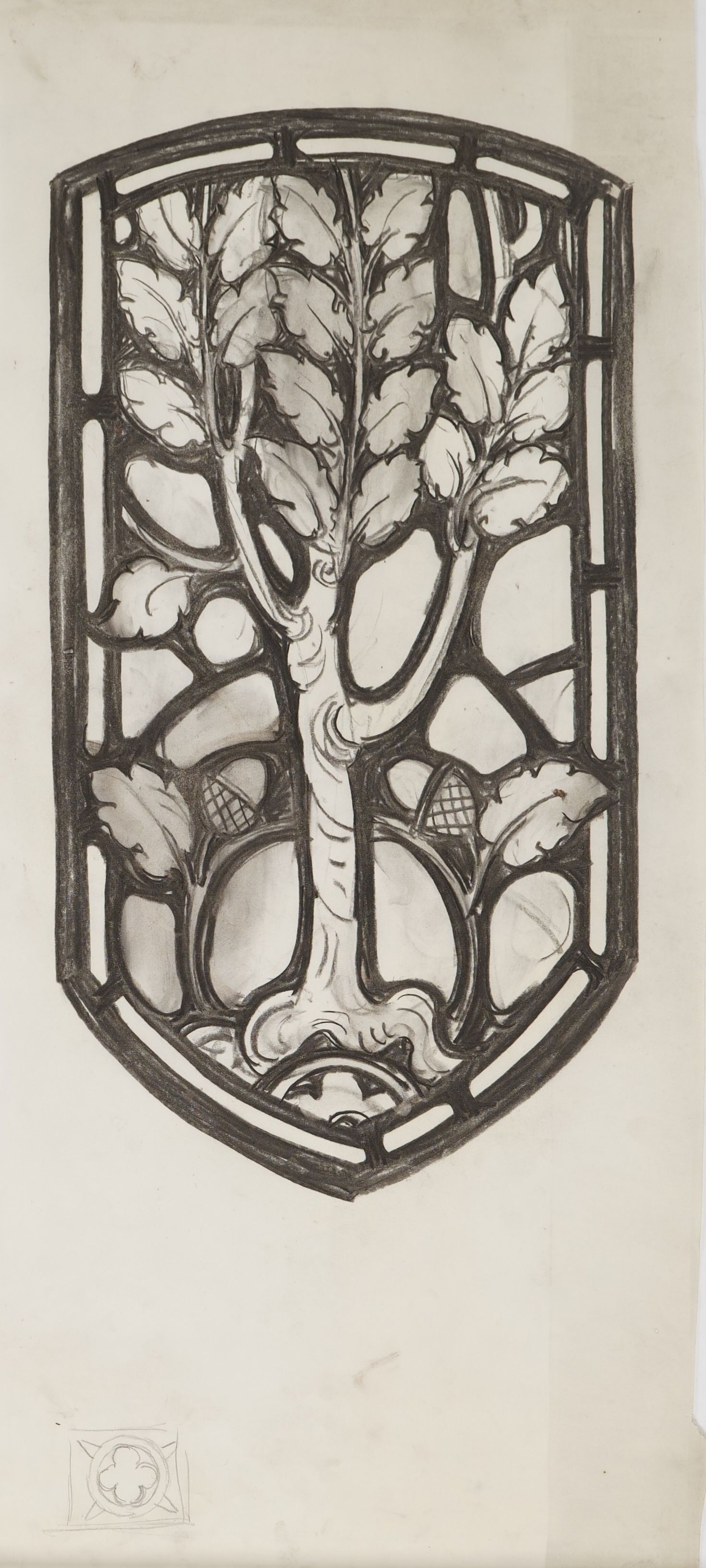 Stained glass scale cartoon, medallion for window at St. Bernard Church, Mt. Lebanon, PA. Depicts an oak tree.Type of Drawing