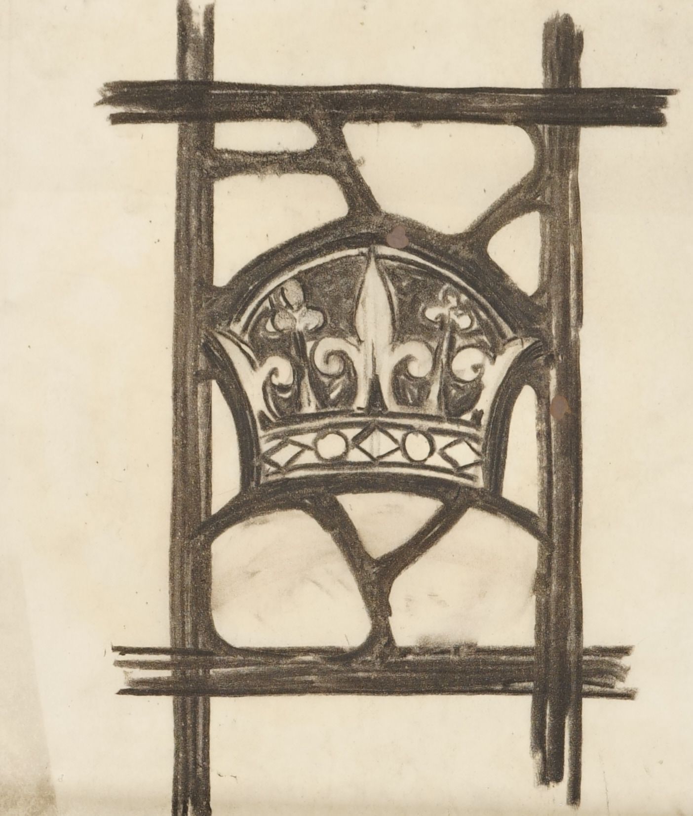 Stained glass scale cartoon, symbol for window at St. Bernard Church, Mt. Lebanon, PA. Depicts a crown.Type of Drawing