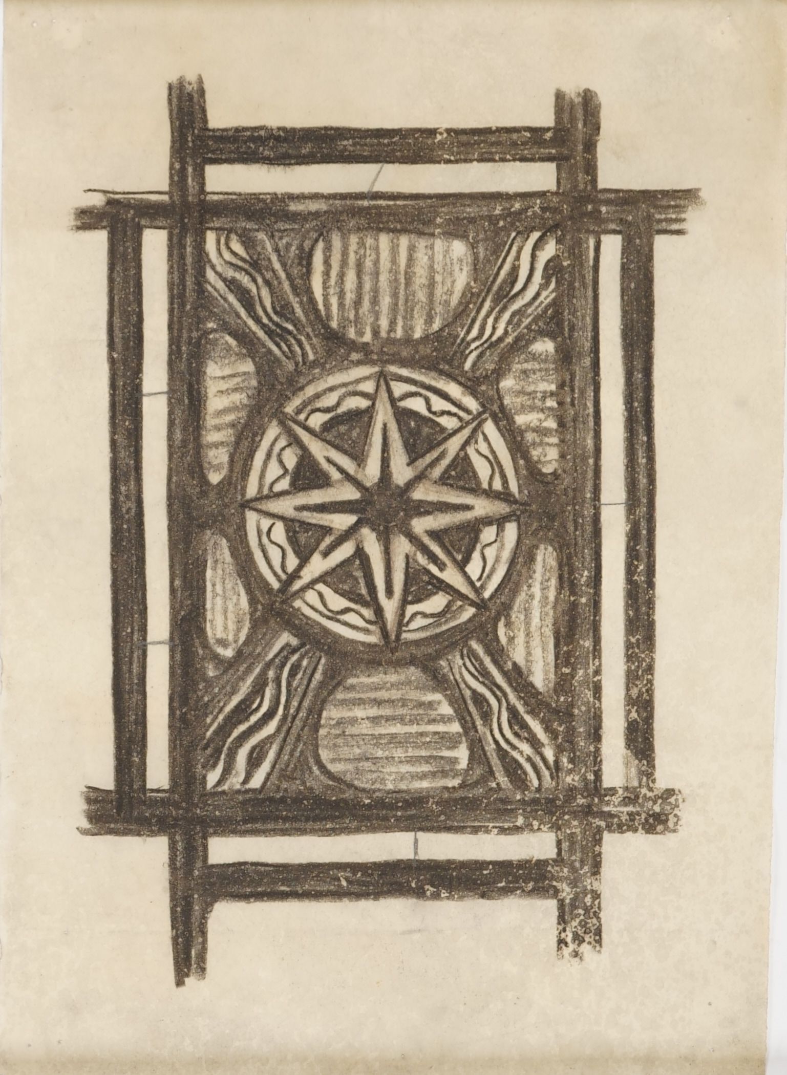 Stained glass scale cartoon, symbol for window at St. Bernard Church, Mt. Lebanon, PA. Depicts an eight-pointed star.Type of Drawing