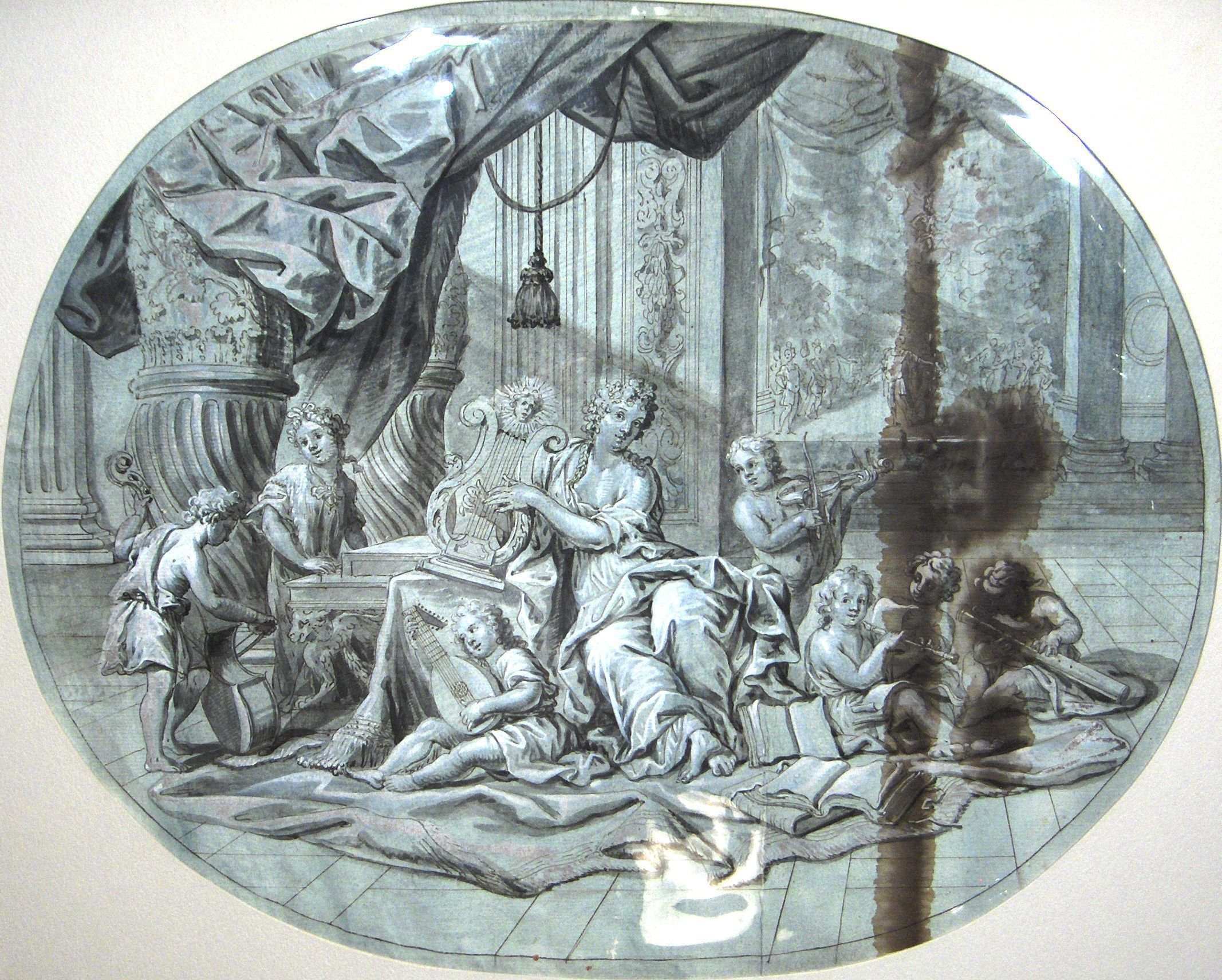 Notes: This drawing is similar in style and subject to the ceiling frescos by Johann Baptist Zimmermann in the Steinerner Saal of Schloss Nymphenburg, Munich. It may be a detail sketch for a ceiling fresco located somewhere else in Germany.