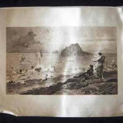 Ink, Silk, Engraving, Monies, Ink, Silk, Engraving, Nudes, Beach, Ocean, Shore