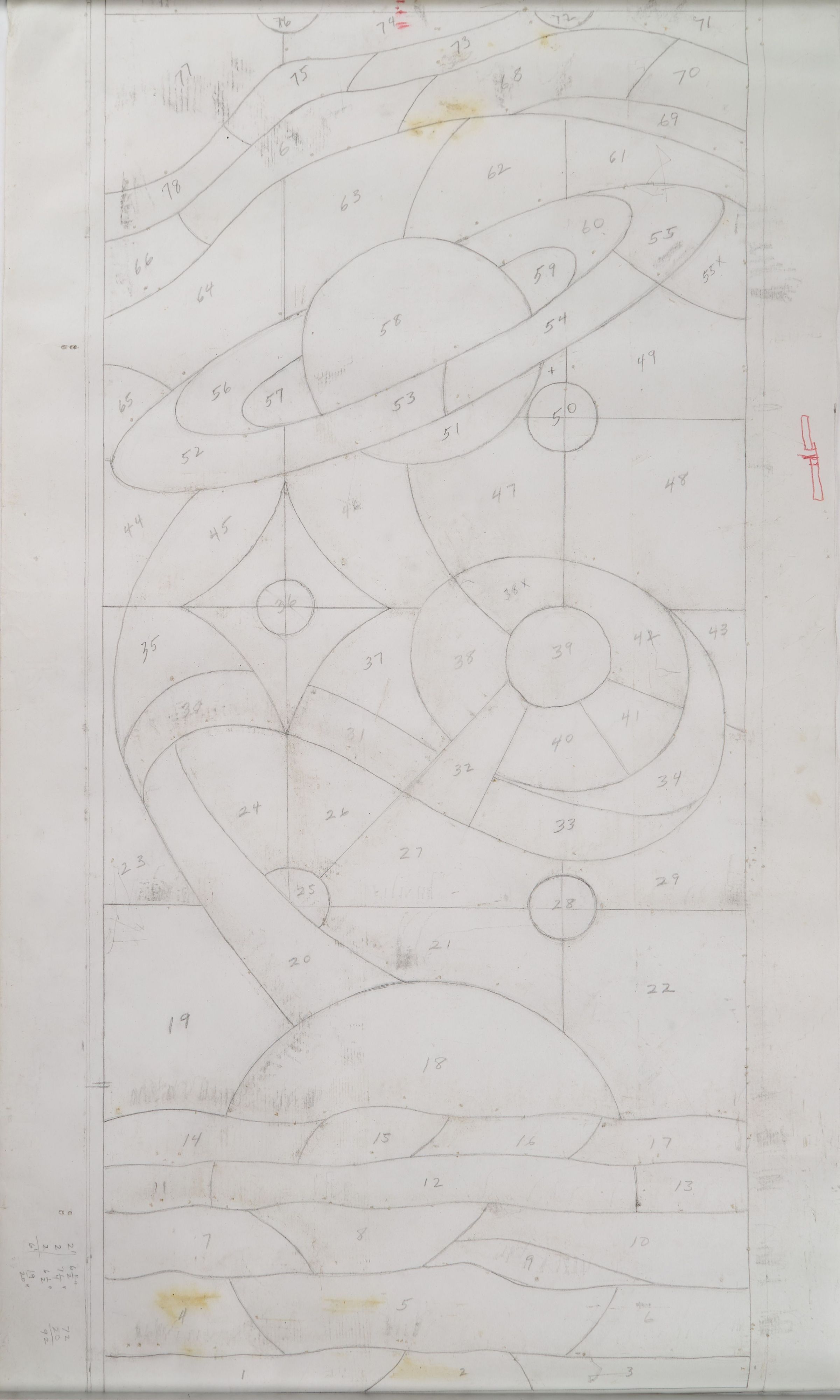 Stained glass scale cartoon. Bottom portion of Louise Pitassi Ellis's "Spheres of Knowledge" window at the Oakmont Carnegie Library in Oakmont, Pennsylvania. See 2021.1.466.Type of Drawing