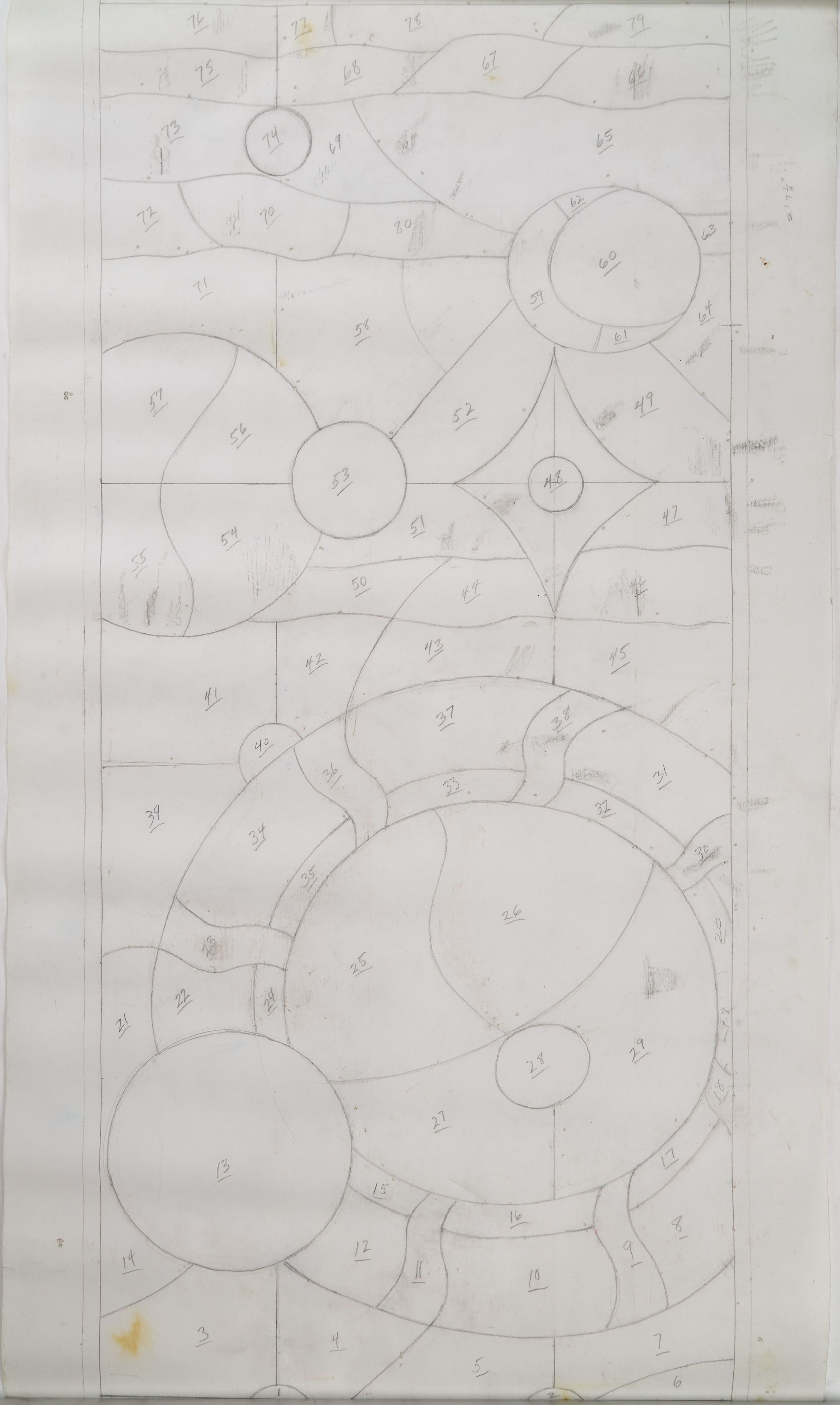 Stained glass scale cartoon. Middle portion of Louise Pitassi Ellis's "Spheres of Knowledge" window at the Oakmont Carnegie Library in Oakmont, Pennsylvania. See 2021.1.466.Type of Drawing