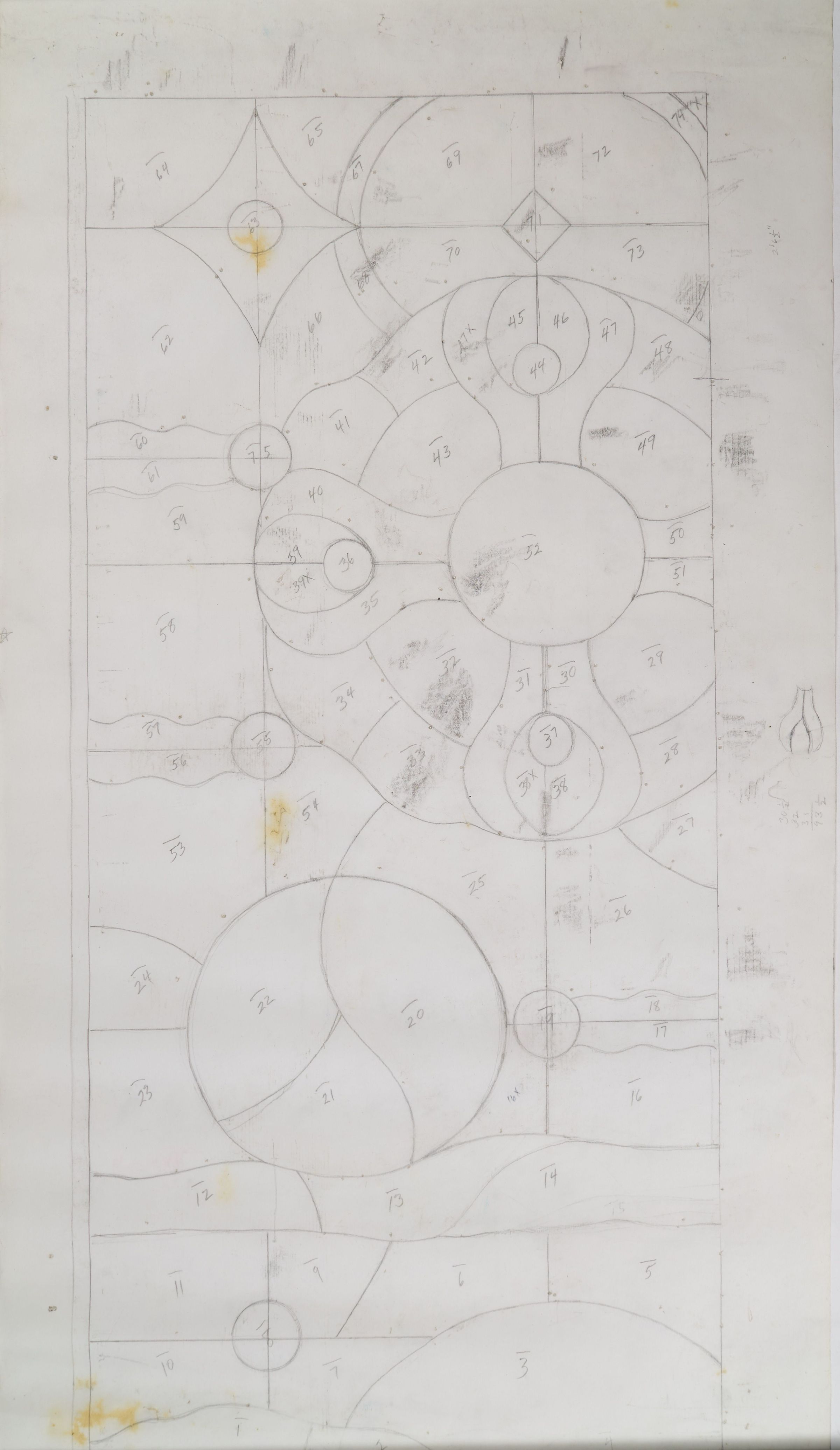 Stained glass scale cartoon. Top portion of Louise Pitassi Ellis's "Spheres of Knowledge" window at the Oakmont Carnegie Library in Oakmont, Pennsylvania. See 2021.1.466.Type of Drawing