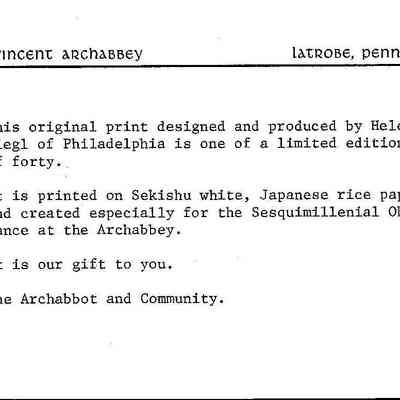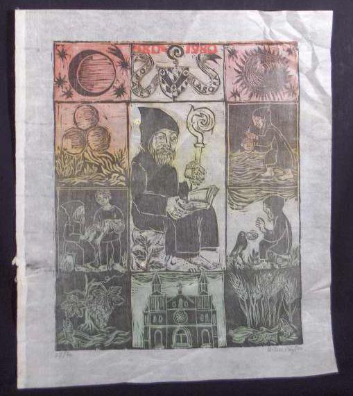 Woodcut, Print, Ink, Paper, Siegl, Helen, Helen Siegl, Siegl, Saint Vincent College, Saint Vincent, Archabbey, Basilica, Religious, Woodcut, Print, Ink, Paper