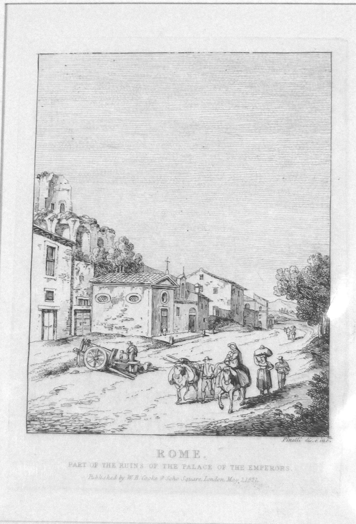 Engraving, Artwork, Ink, Part of the Ruins of the Palace of the Emperors, Town, Street, Donkey, Mule, Rome, W.B. Cooke, Bartolomeo Pinelli, Twenty Five Views in Rome and its Vicinity, Engraving, Artwork, Ink