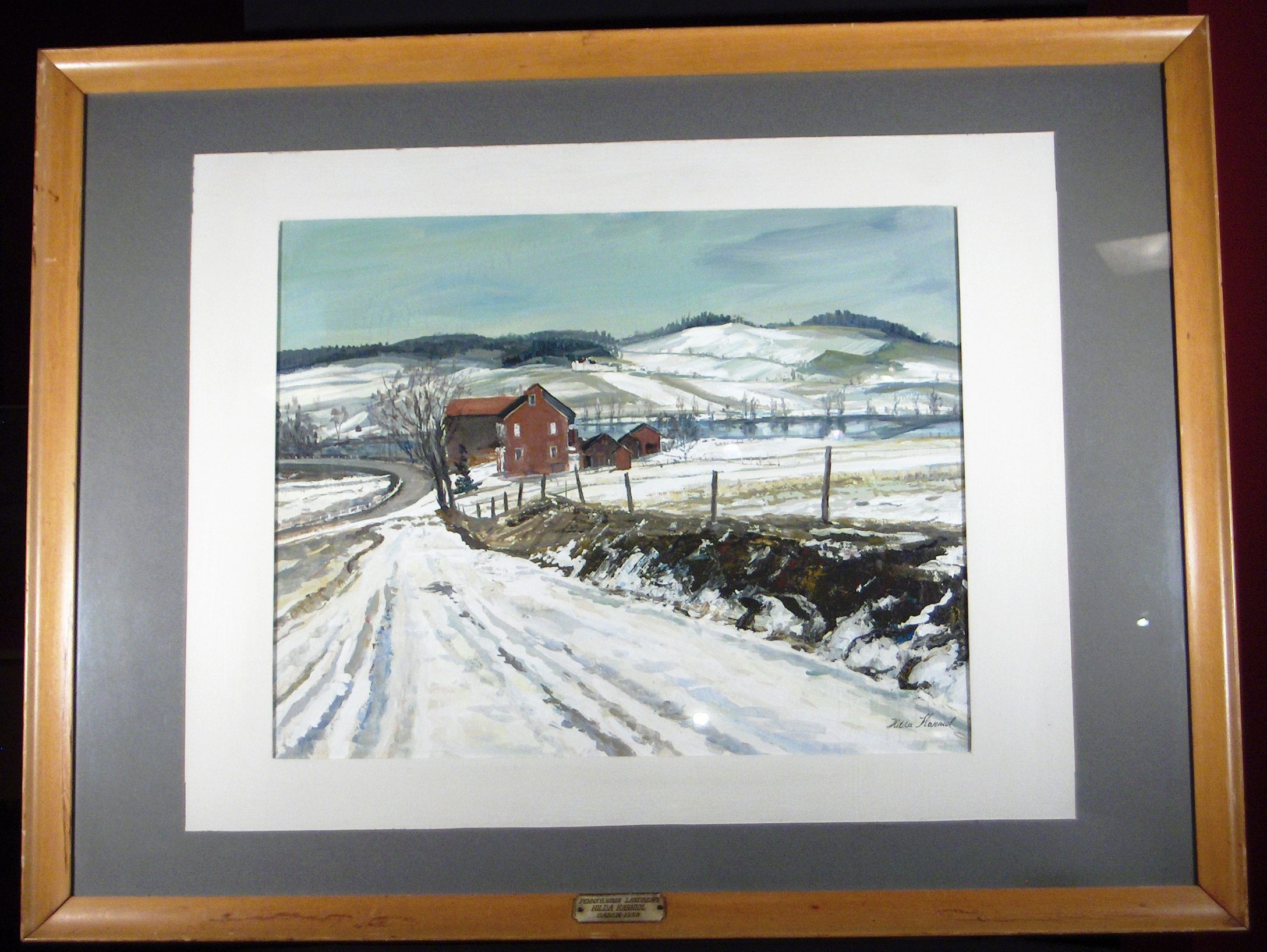 Oil, Board, Painting, Farm, Mountain, Snow, Road, Landscape, Pennsylvania, Karniol, Hilda, Karniol, Hilda Karniol, Oil, Board, Painting
