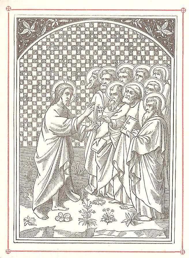 Ink, Paper, Print, Lithograph, Schongauer, Martin, Martin Schongauer, Schongauer, Albrecht Durer, Durer, Albrecht, Durer, Ink, Paper, Print, Lithograph, Prayer Cards, Religious, Religious Subject Matter, Jesus, Key, Heaven, Apostles, Peter