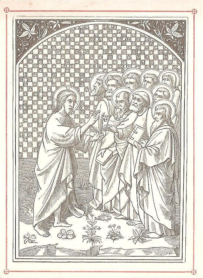 Ink, Paper, Print, Lithograph, Schongauer, Martin, Martin Schongauer, Schongauer, Albrecht Durer, Durer, Albrecht, Durer, Ink, Paper, Print, Lithograph, Prayer Cards, Religious, Religious Subject Matter, Jesus, Key, Heaven, Apostles, Peter
