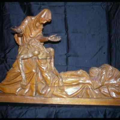Notes: The right arm of Christ has been broken and reattached. Several fingers on Mary's left hand have been broken and reattached.