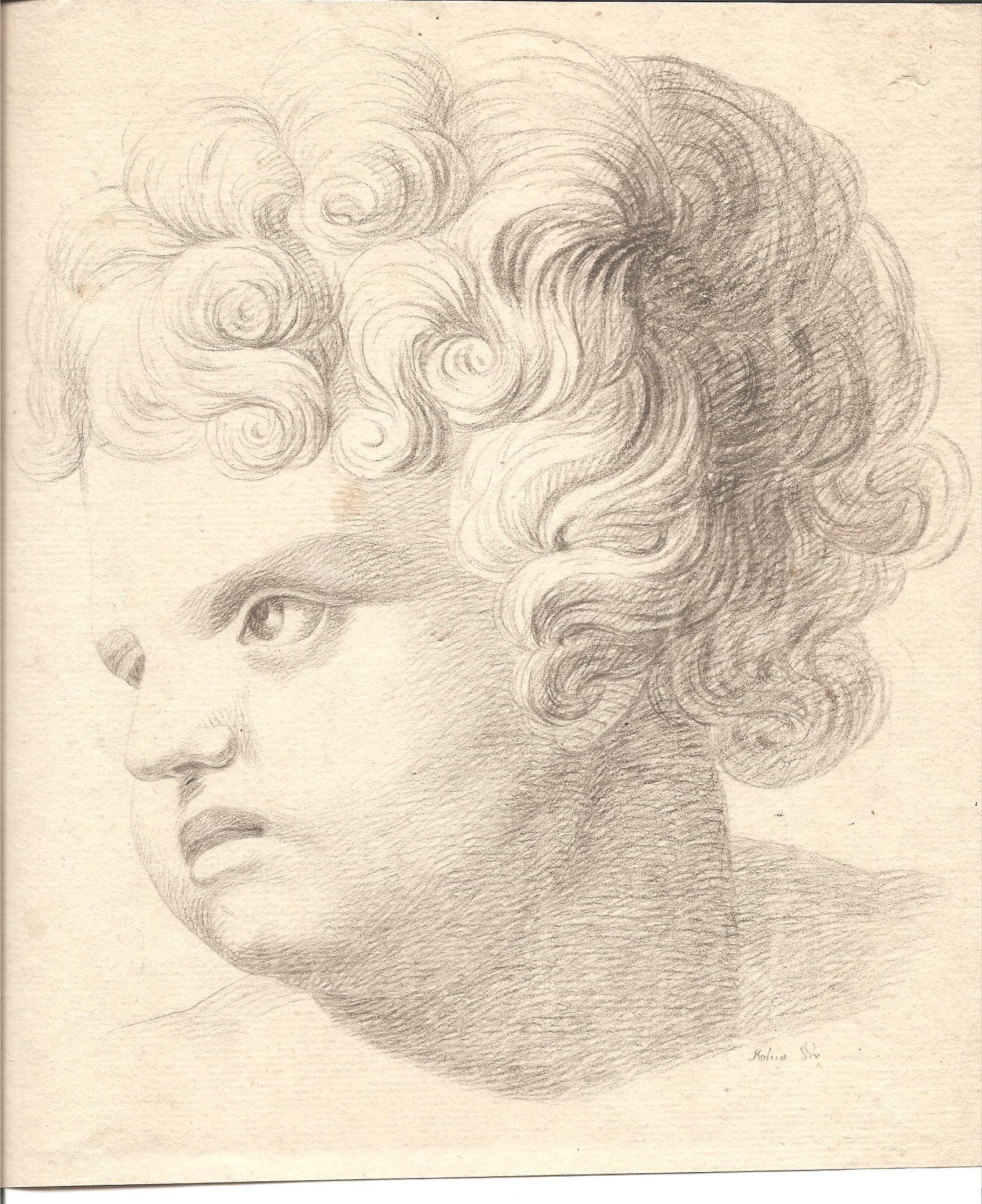 Paper, Drawing, Graphite, Head, Child, Portrait, Bust, Paper, Drawing, GraphiteDimensions