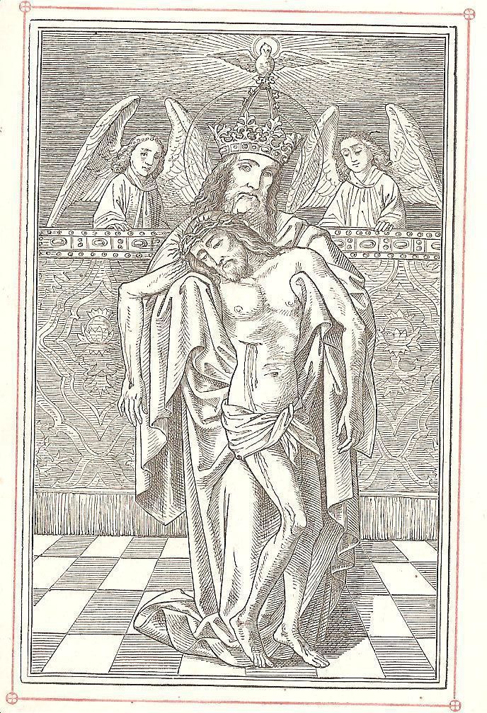 Ink, Paper, Print, Lithograph, Schongauer, Martin, Martin Schongauer, Schongauer, Albrecht Durer, Durer, Albrecht, Durer, Ink, Paper, Print, Lithograph, Prayer Cards, Religious, Religious Subject Matter, Holy Trinity, Father, Son, Spirit, Angels