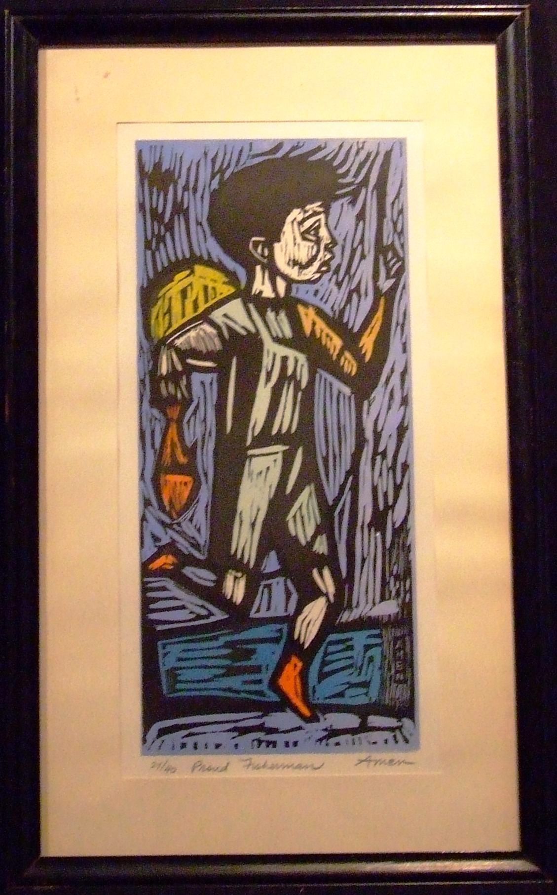 Print, Ink, Woodcut, Paper, Amen, Irving Amen, Amen, Irving, Print, Ink, Woodcut, Paper, Proud Fisherman, Fisherman