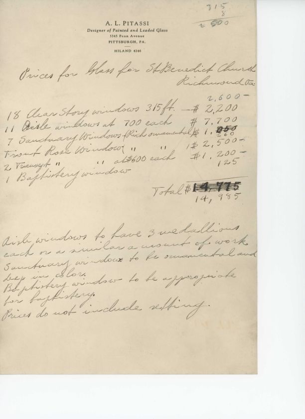 Prices for Glass for St. Benedict Church