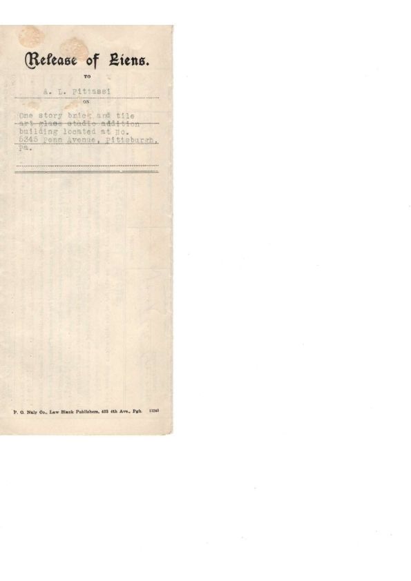 Release of Liens for Pitassi Studio from 1931Collection