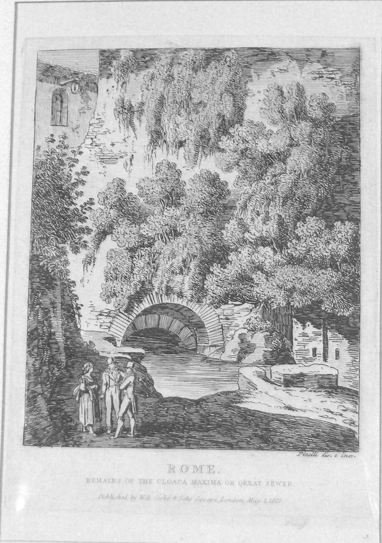 Engraving, Artwork, Ink, Remains of the Cloaca Maxima or Great Sewer, Water, Sewer, 19th Century, Plants, Rome, W.B. Cooke, Bartolomeo Pinelli, Twenty Five Views in Rome and its Vicinity, Engraving, Artwork, Ink
