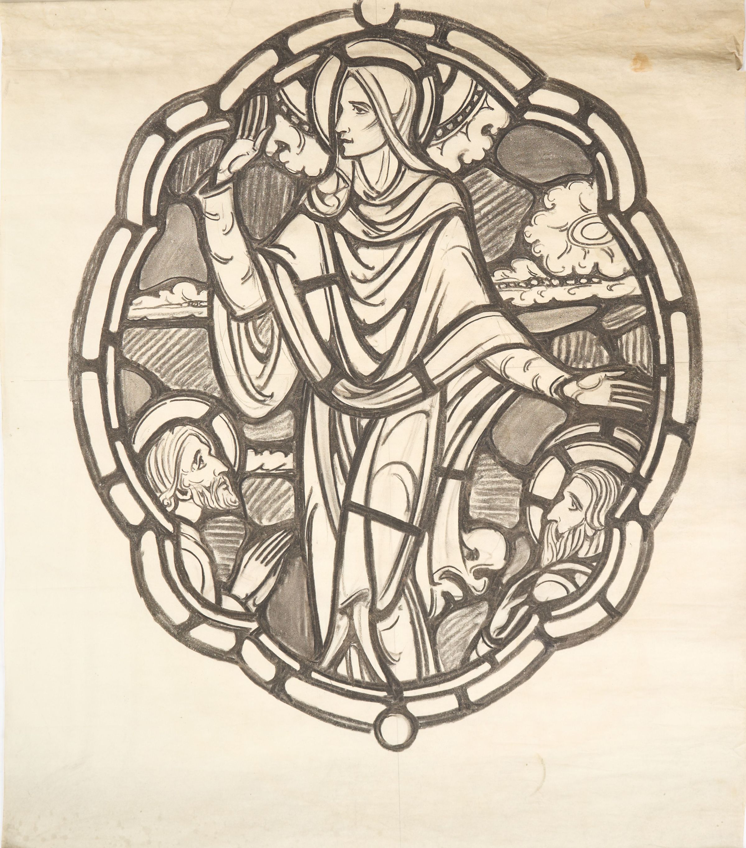 Stained glass scale cartoon; St. Mary Catholic Church, Rome, GA. Aisle window medallion depicting Mary assumption into Heaven. In situ image by Nheyob: https://commons.wikimedia.org/wiki/Category:Stained-glass_windows_in_Saint_Mary%27s_Catholic_Church_(Rome,_Georgia)#/media/File:Saint_Mary's_Catholic_Church_(Rome,_Georgia)_-_stained-glass,_Assumption_of_St._Mary.jpgType of Drawing