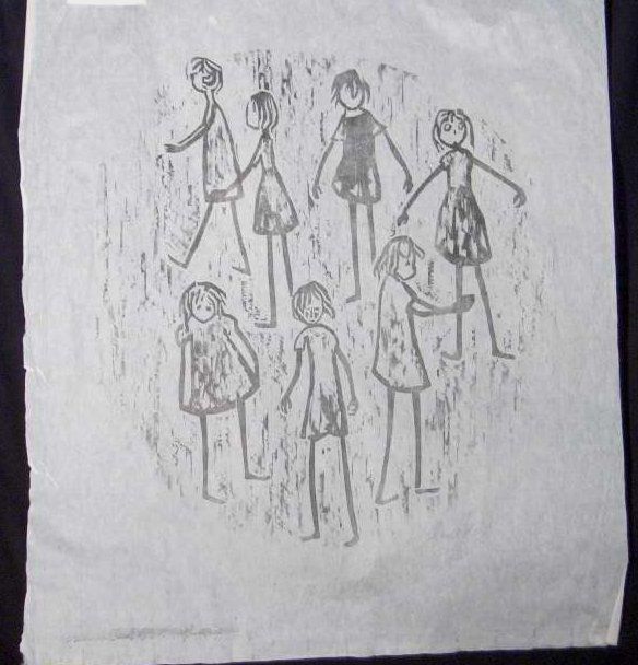 Woodcut, Woodcut Print, Paper, Print, Girls, Children, Woodcut, Woodcut Print, Paper, Print, Gertrude, Gertrude Panek, Gertrude Quaslter, Quastler, Quastler, Gertrude