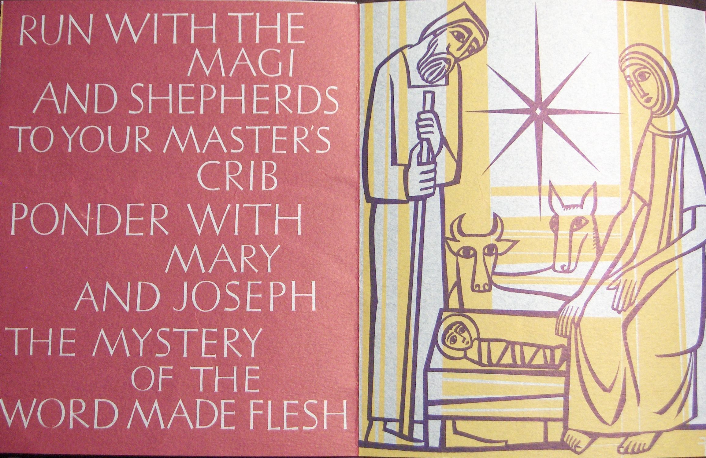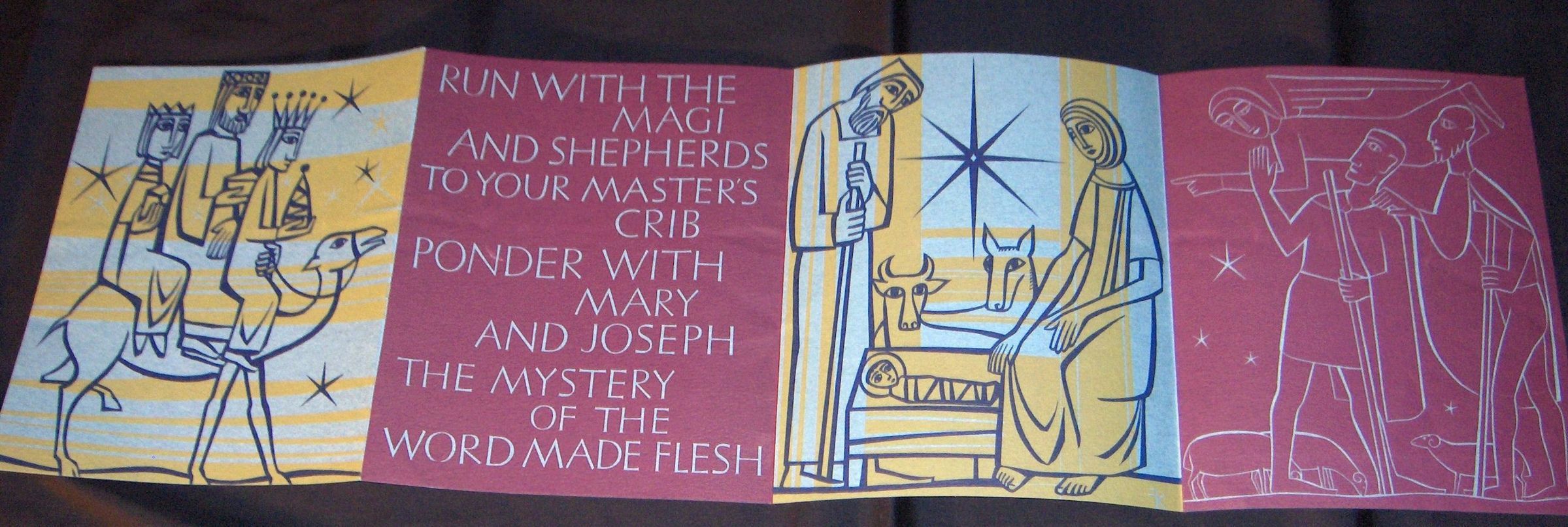 Ink, Paper, Print, Kacmarcik, Frank, Kacmarcik, Frank Kacmarcik, Ink, Paper, Print, Card, Mary, Virgin, Madonna, Mother, The Mystery of the Word Made Flesh, Jesus, Baby jesus, Christ, Magi, Nativity, Joseph, Holy Family, Shepherds, Angel, Christmas, Christmas Card