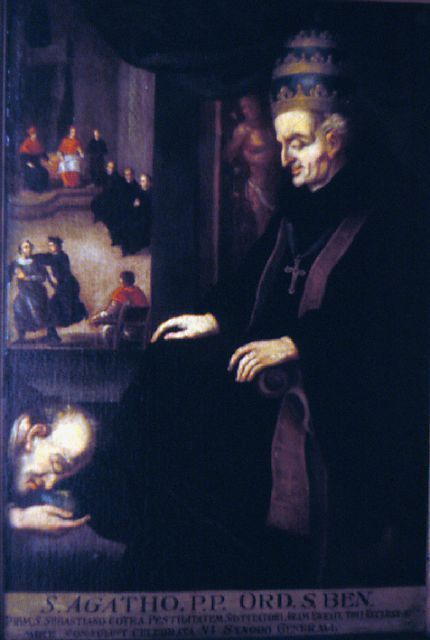"S. Agatho, P.P. Ord. S. Ben. Prim. S. Sebastiano Cotra Pestilitatem Sospitatori Aram Erexit, Toti Ecclesiae Mire Consuluit Celebrata VI Synodo Generali."Entry/Object ID