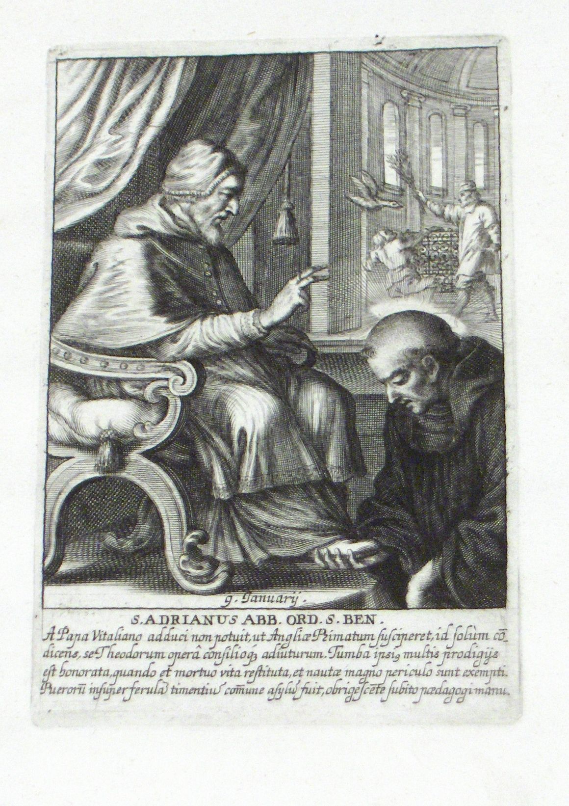 Engraving, Artwork, Ink, Saint Adrian, Saint, Monk, Abbot, African, Abbot of St. Peter, Canterbury, Pope Vitaliano, Engraving, Artwork, Ink