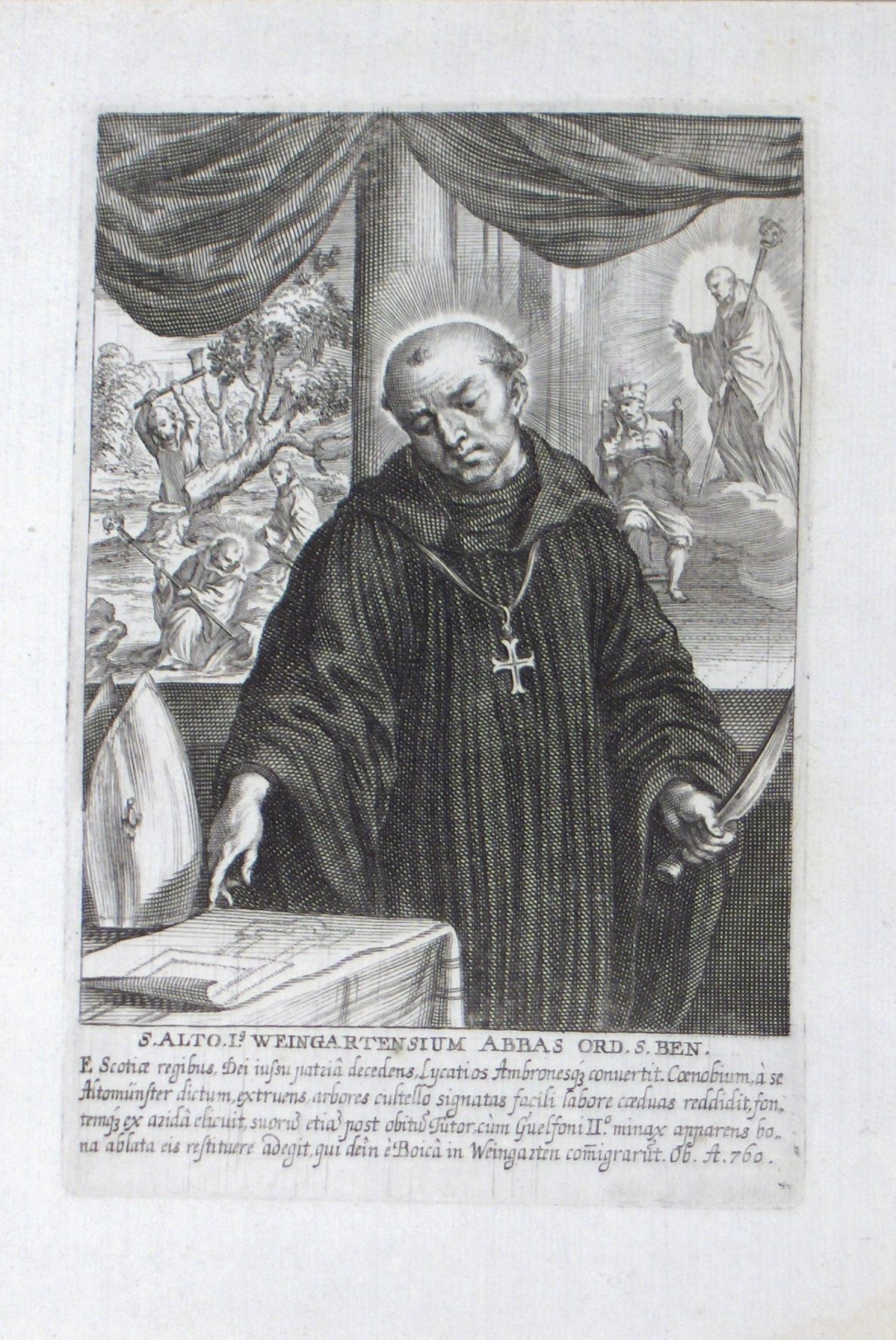 Engraving, Artwork, Ink, Saint Alto, Saint, Monk, Tree, Chop, Blueprint, Plans, Vision, Knife, Altomünster, Bavaria, Irish, Engraving, Artwork, Ink