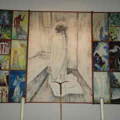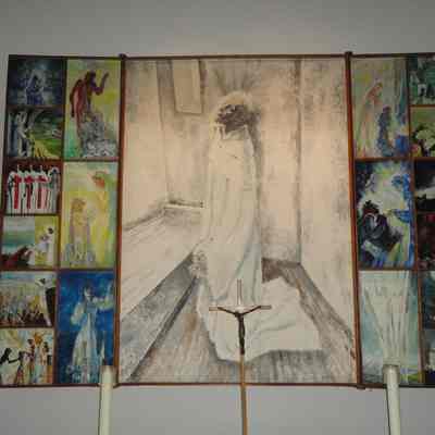 Commissioned from the artist for the 1946 renovation of the Archabbey Basilica Crypt by Fr. Quentin Schaut, O.S.B.General Notes