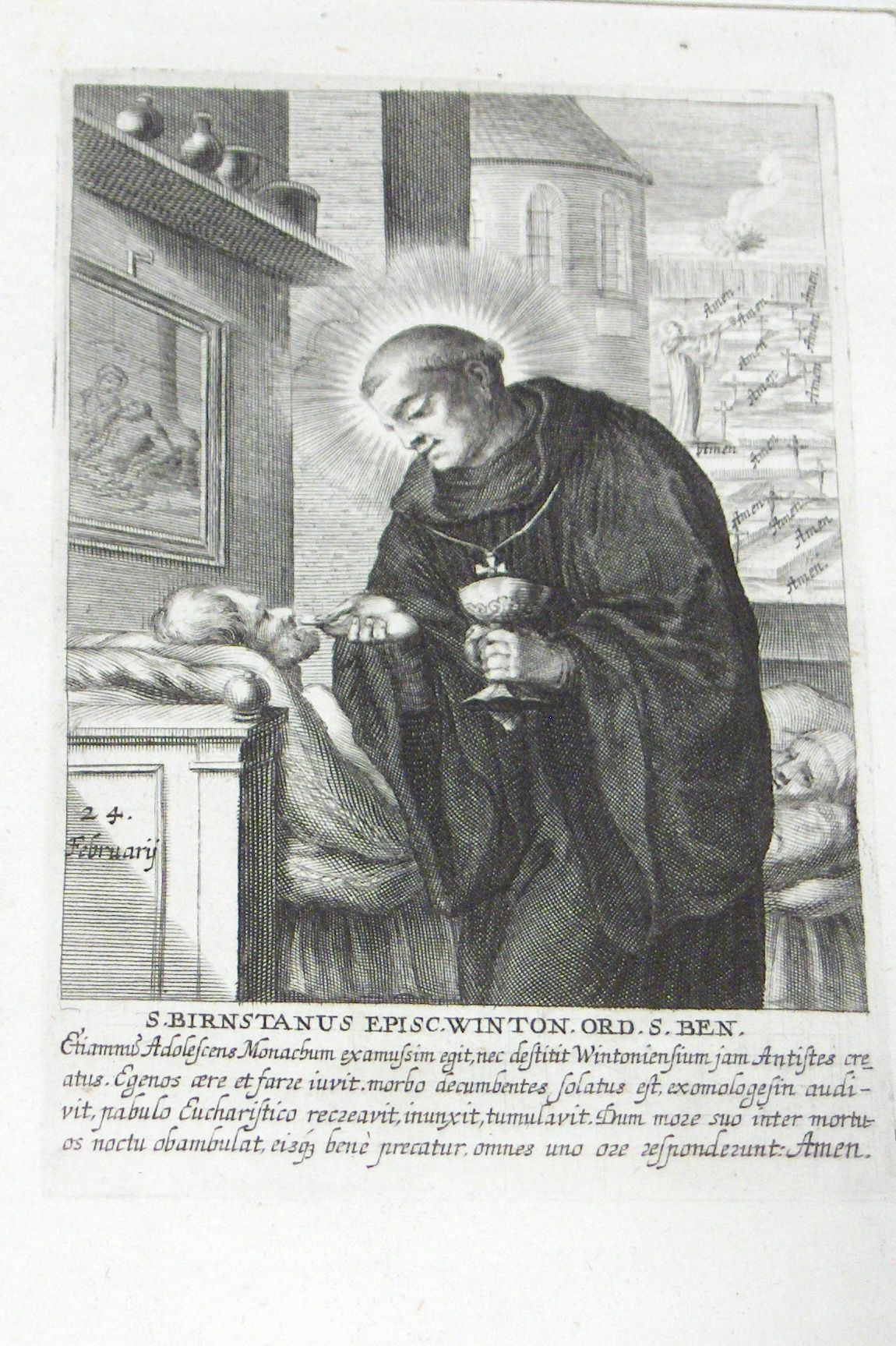 Engraving, Artwork, Ink, Saint Birstan, Monk, Eucharist, Body of christ, Sick, Chalice, Bed, Engraving, Artwork, Ink