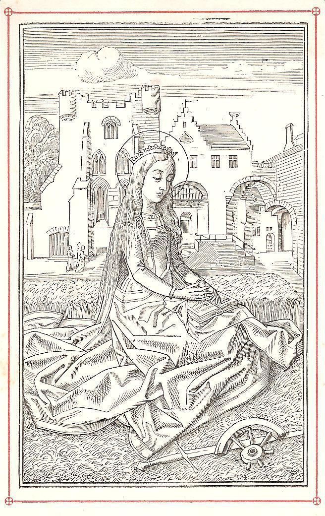 Ink, Paper, Print, Lithograph, Schongauer, Martin, Martin Schongauer, Schongauer, Albrecht Durer, Durer, Albrecht, Durer, Ink, Paper, Print, Lithograph, Prayer Cards, Religious, Religious Subject Matter, Saint Catherine of Alexandria, Wheel, Sword, Book, Martyr