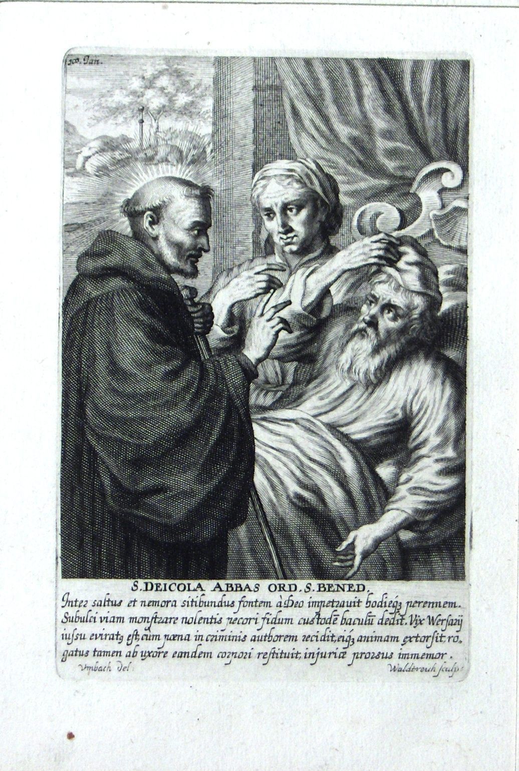 Engraving, Artwork, Ink, Saint Deicola, Saint, Preist, Monk, Sick, Death, Man, Woman, Healing, Engraving, Artwork, Ink