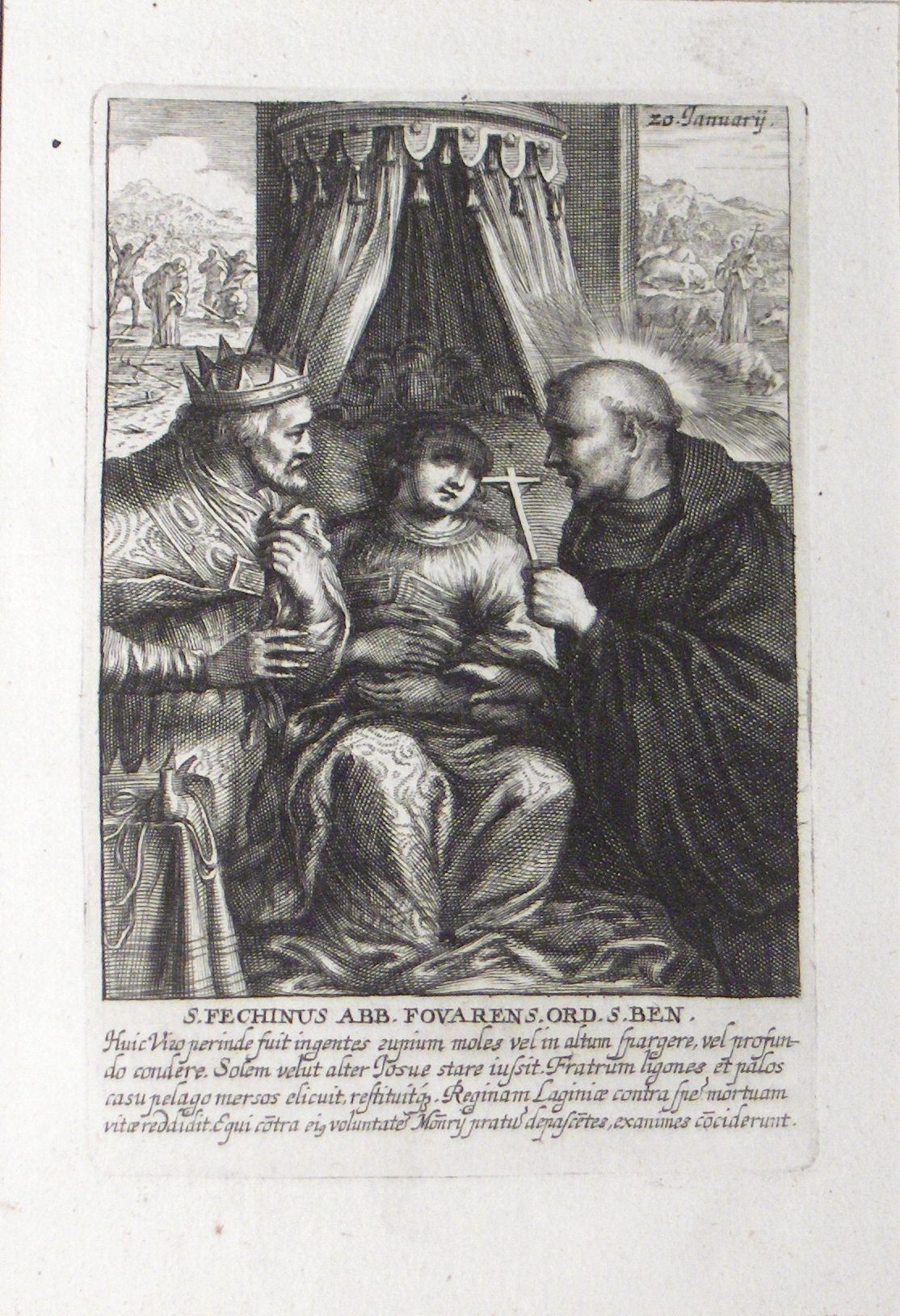 Engraving, Artwork, Ink, Saint Fechin, Irish, Ireland, Saint, Abbot, King, Child, Nobility, Cross, Bed, Feilds, Crown, Monk, O'Hara, St. Nathy, Plague, Engraving, Artwork, Ink