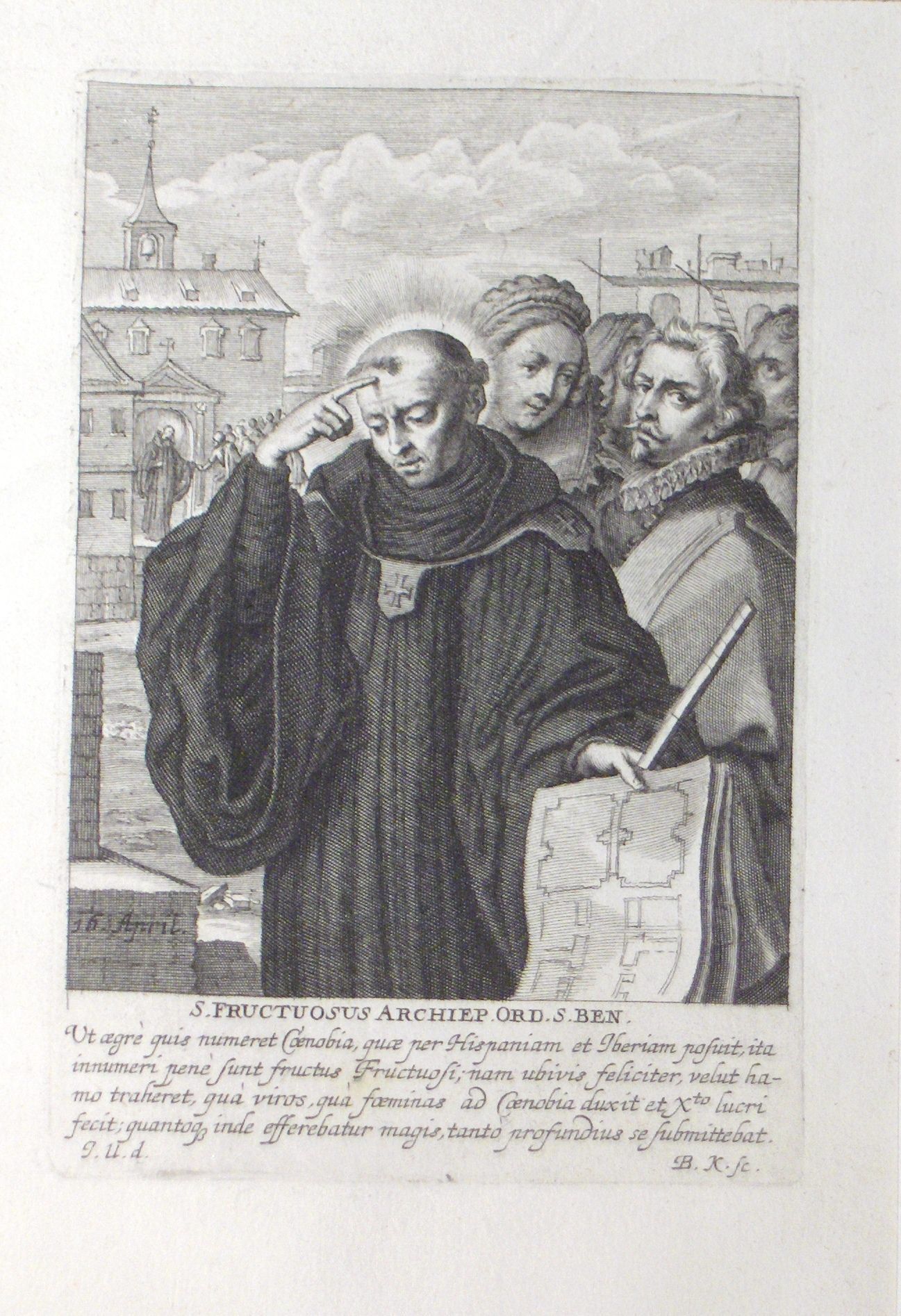 Engraving, Artwork, Ink, Saint Fructuosus, Abbot, Spain, Blueprint, Architecture, Saint, Building, Citizens, Man, Women, Church, Monk, Engraving, Artwork, Ink