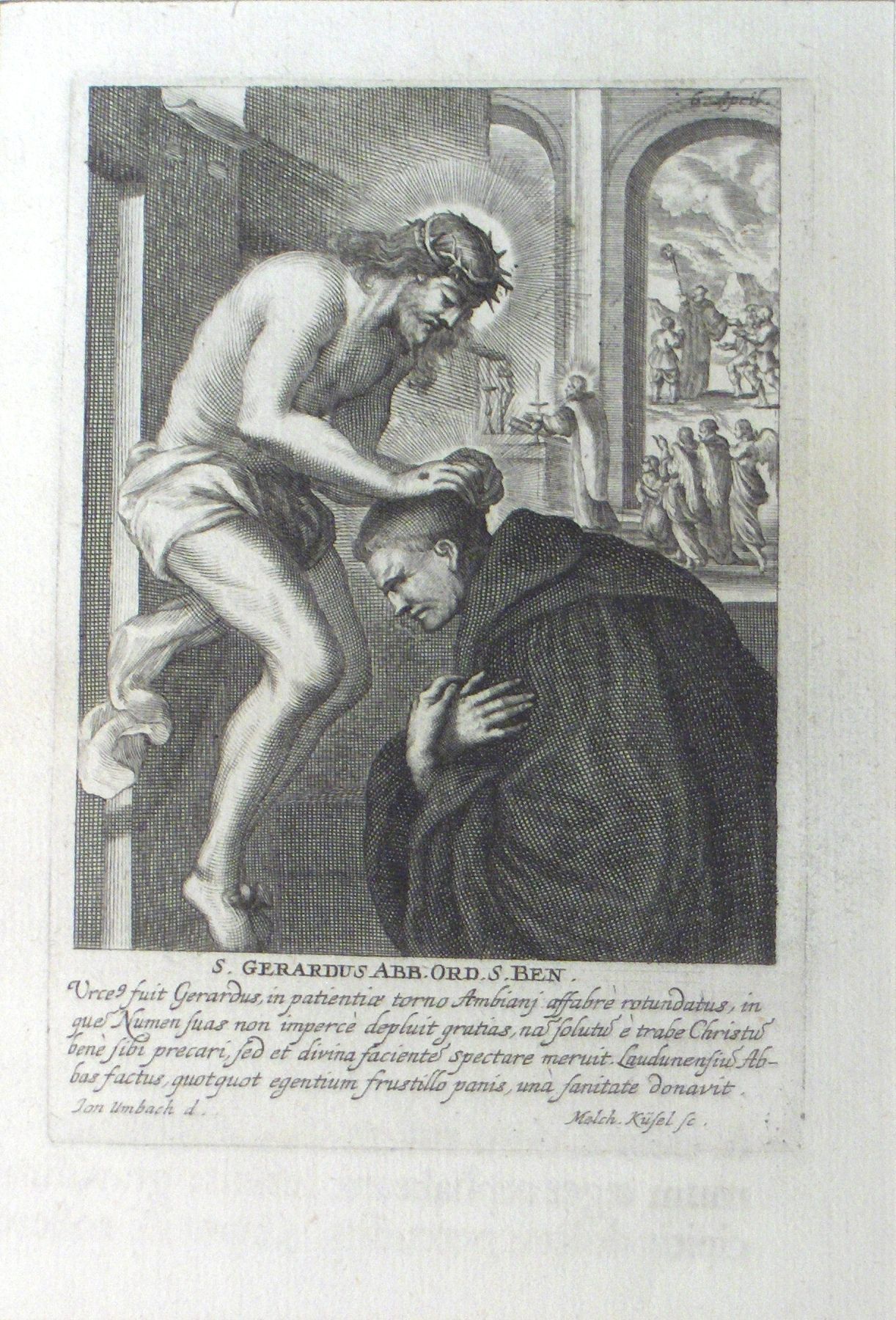 Engraving, Artwork, Ink, Saint Gerard, Saint, Abbot, Monk, Jesus, Cross, Crucifix, Prayer, Touch, Hands, Engraving, Artwork, Ink