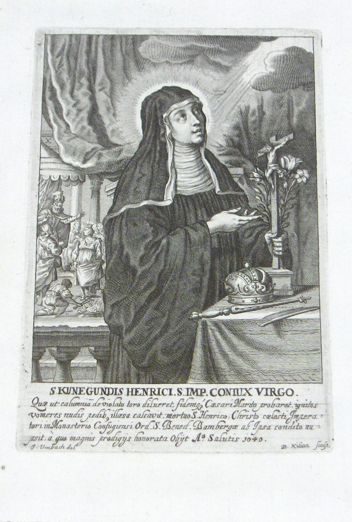 Engraving, Artwork, Ink, Saint Kunegundis, Virgin, Nun, Crown, Crucifix, Flowers, Habit, Engraving, Artwork, Ink