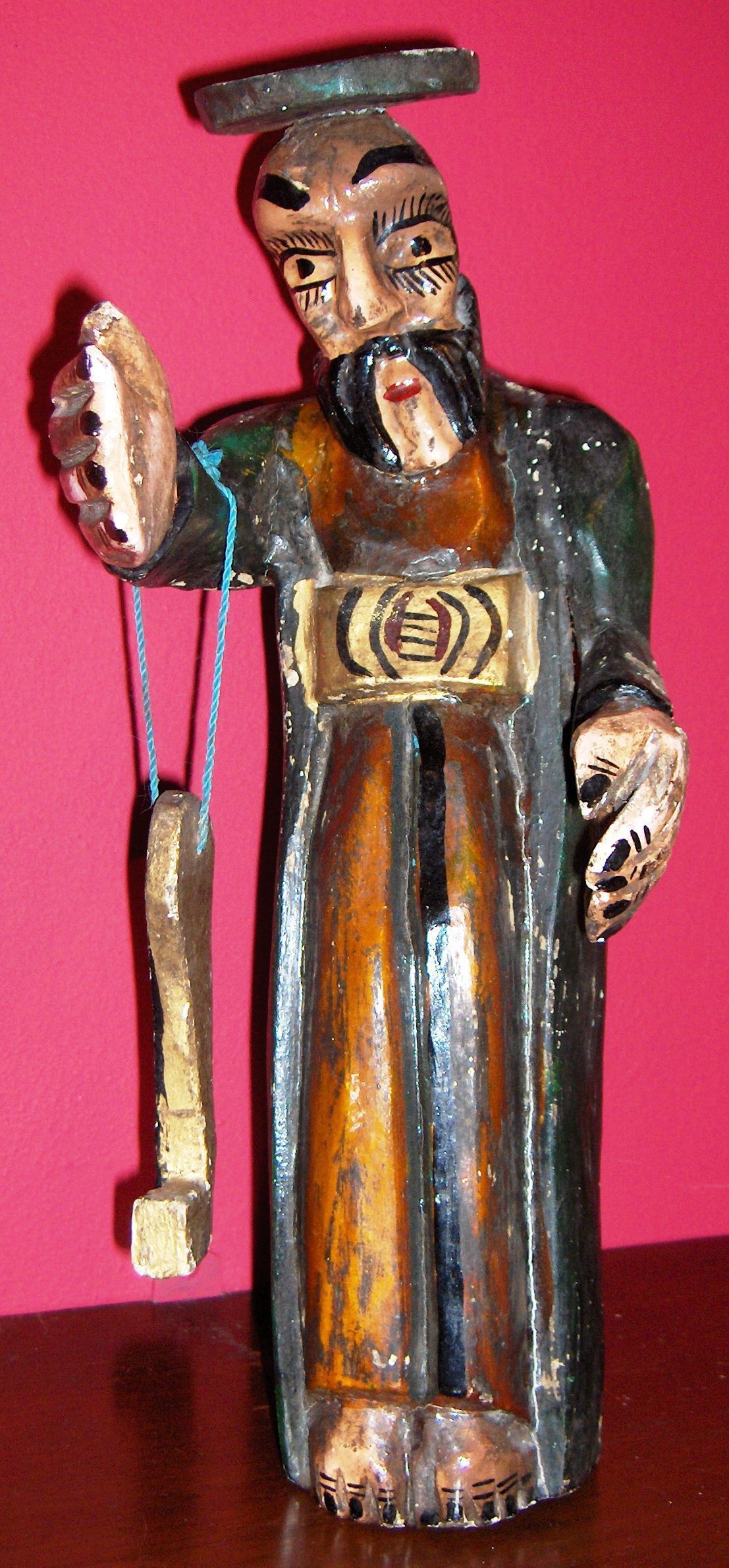 A Santos figure of Saint Peter. He has his hands extended and has keys dangling from his right arm.Collection