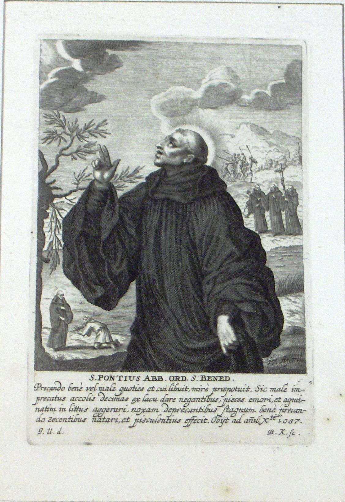 Engraving, Artwork, Ink, Saint Pontius, Outdoors, Monks, Saint, Abbot, Engraving, Artwork, InkOther Names and Numbers