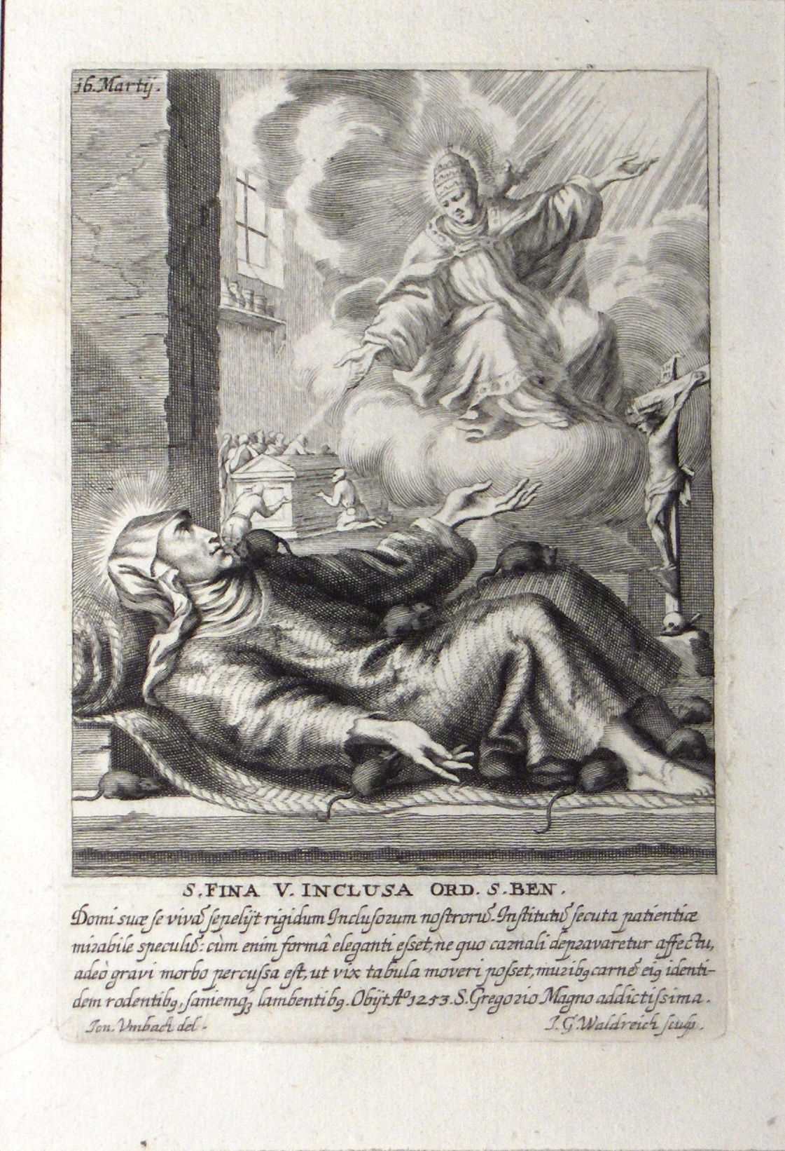 Engraving, Artwork, Ink, Saint Seraphina, Saint Fina, Saint, Vermin, Rats, Angel, Crucifix, Oak Board, Italy, Italian, Poverty, Virtue, Engraving, Artwork, Ink