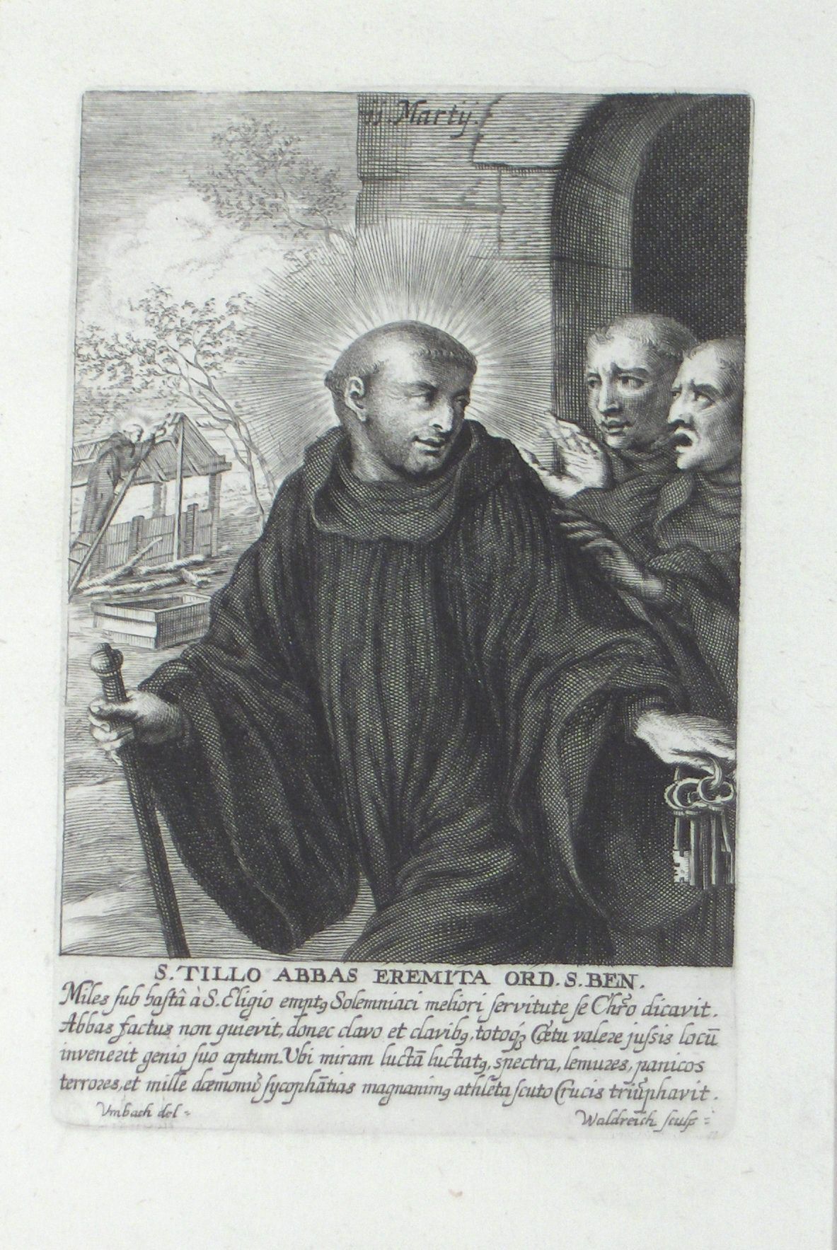 Engraving, Artwork, Ink, Saint Tillo, Saint, Monk, Hermit, Theau, Filman, Flanders, Hillonius, Missionary, Keys, Engraving, Artwork, Ink