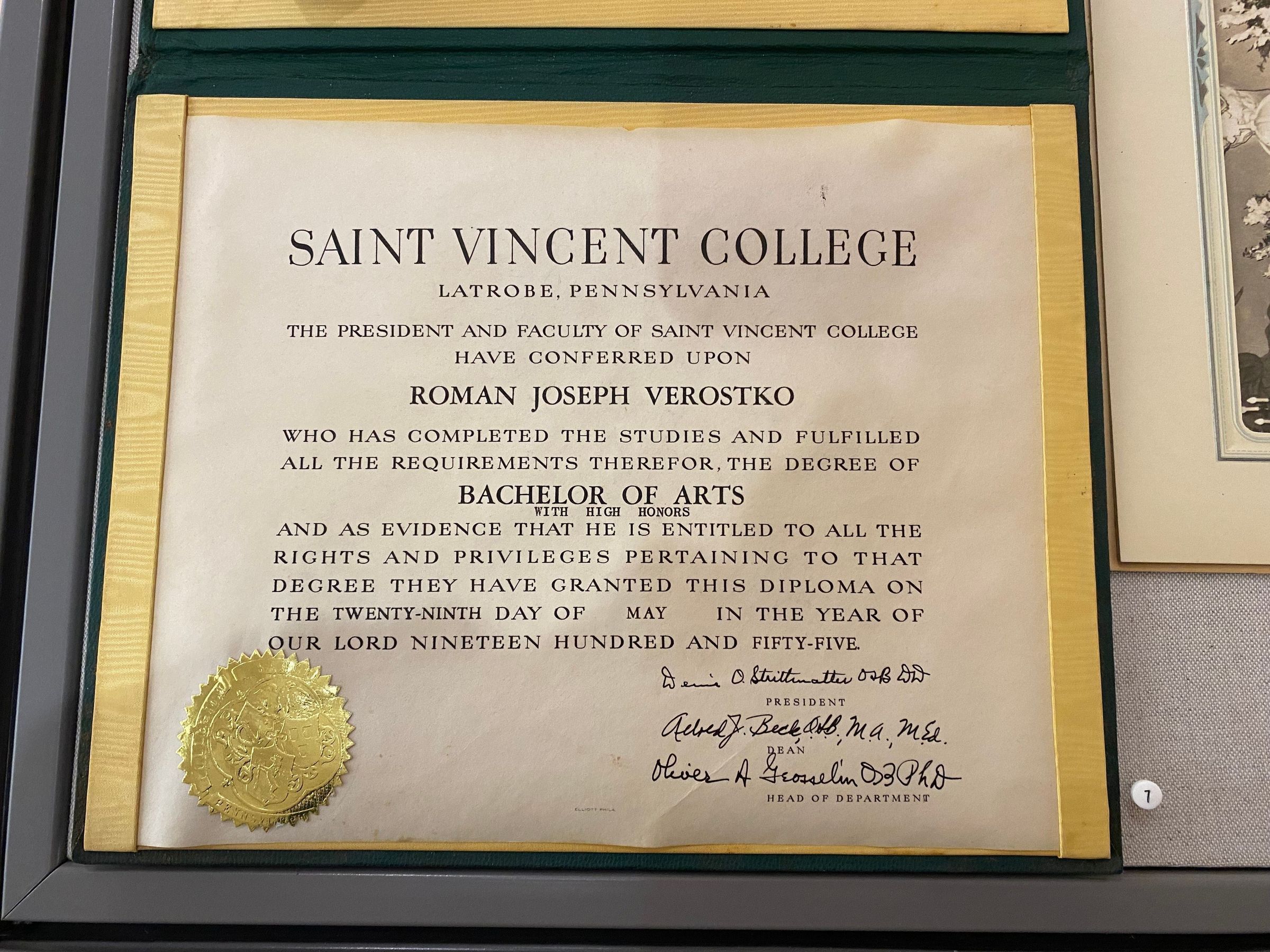 The artist’s Bachelor of Arts diploma from Saint Vincent College.Collection
