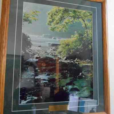 Photograph of sunlight on a stream in a forest. Due to lack of information, the accession number is not the year that the piece was acquired to the collection but the year it was inventoriedArtwork Details