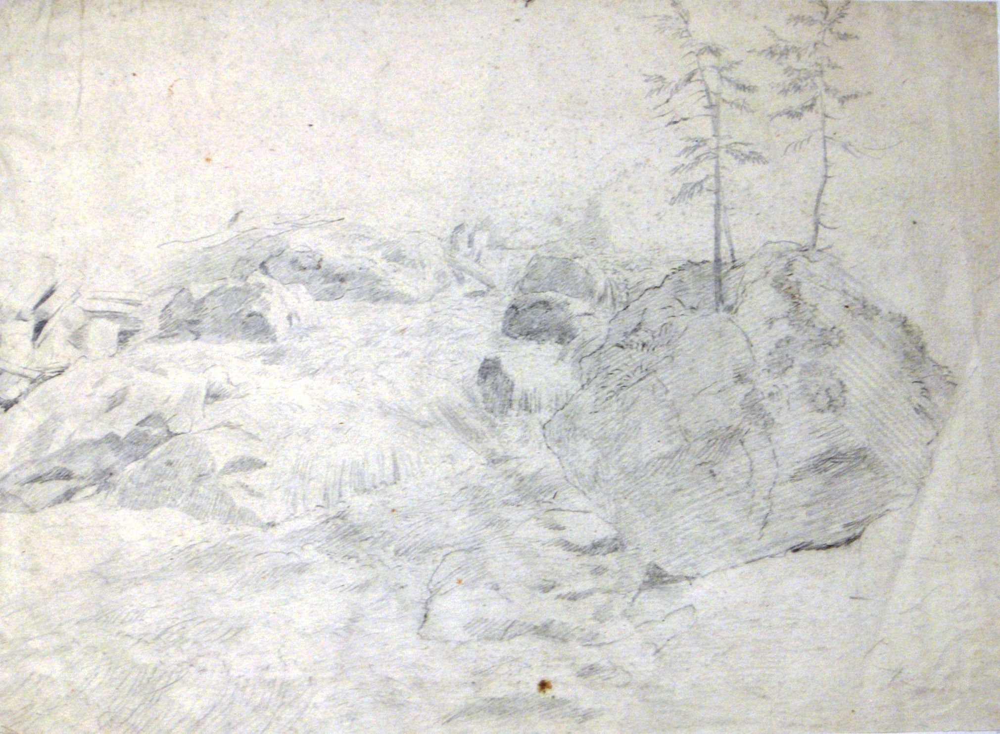 Graphite, Paper, Drawing, Mountains, Boulders, Trees, Forests, Graphite, Paper, DrawingDimensions