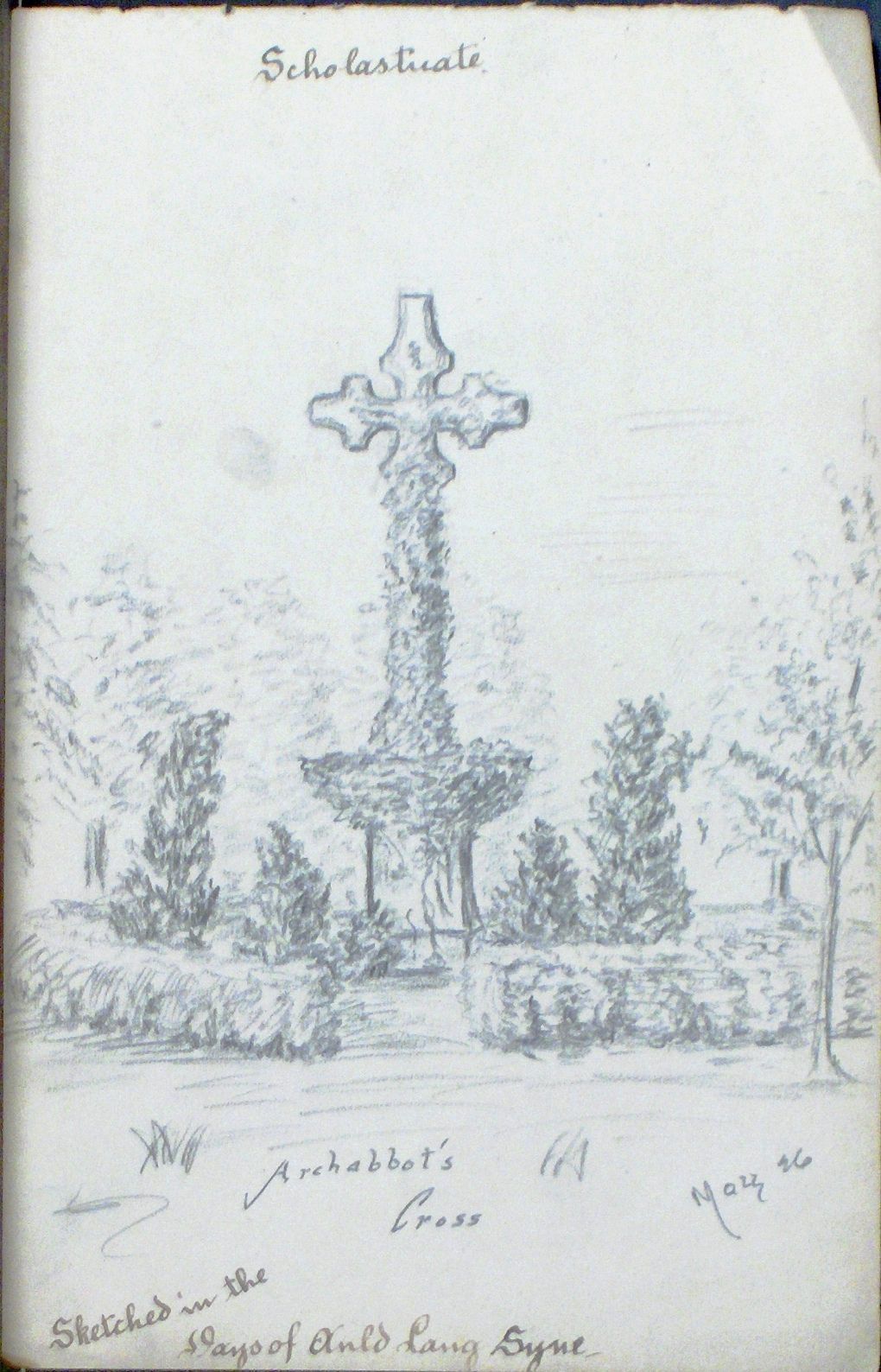 Art, Drawing, Art, Drawing, Archabbots, Crosses, Graves, Cemeteries, Monuments, Headstones, Catholic, Trees, Graveyards, Saint Vincent, Saint Vincent College, Saint Vincent Cemetery