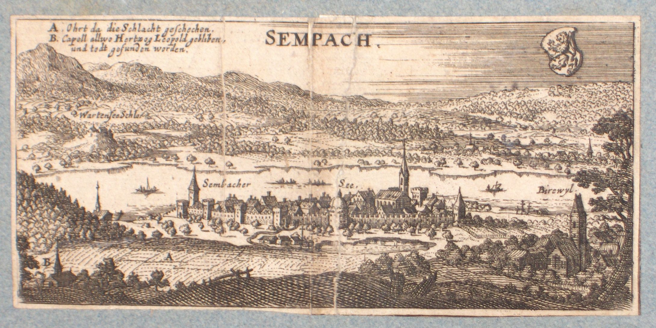 Engraving, Artwork, Ink, Sempach, Lake Sempach, Lake of Sempach, Switzerland, Sursee, Lucerne, Battlefield, Town, Municipality, Lake, Engraving, Artwork, Ink