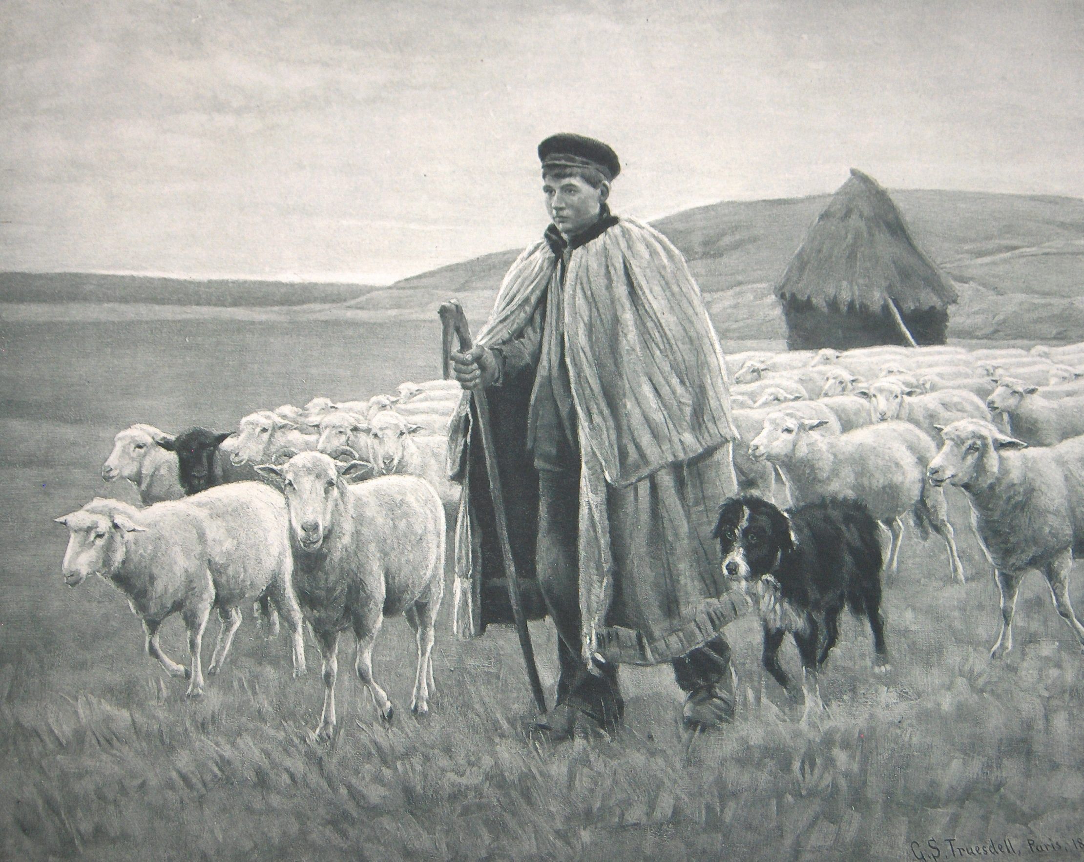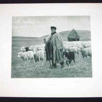 Ink, Paper, Print, Lithograph, Ink, Paper, Print, Lithograph, Shepherd, Flock, Sheep, Dog, Sheepdog, Goupil, Truesdell, G.S., Truesdell, G.S. Truesdell, Goupil & Cie