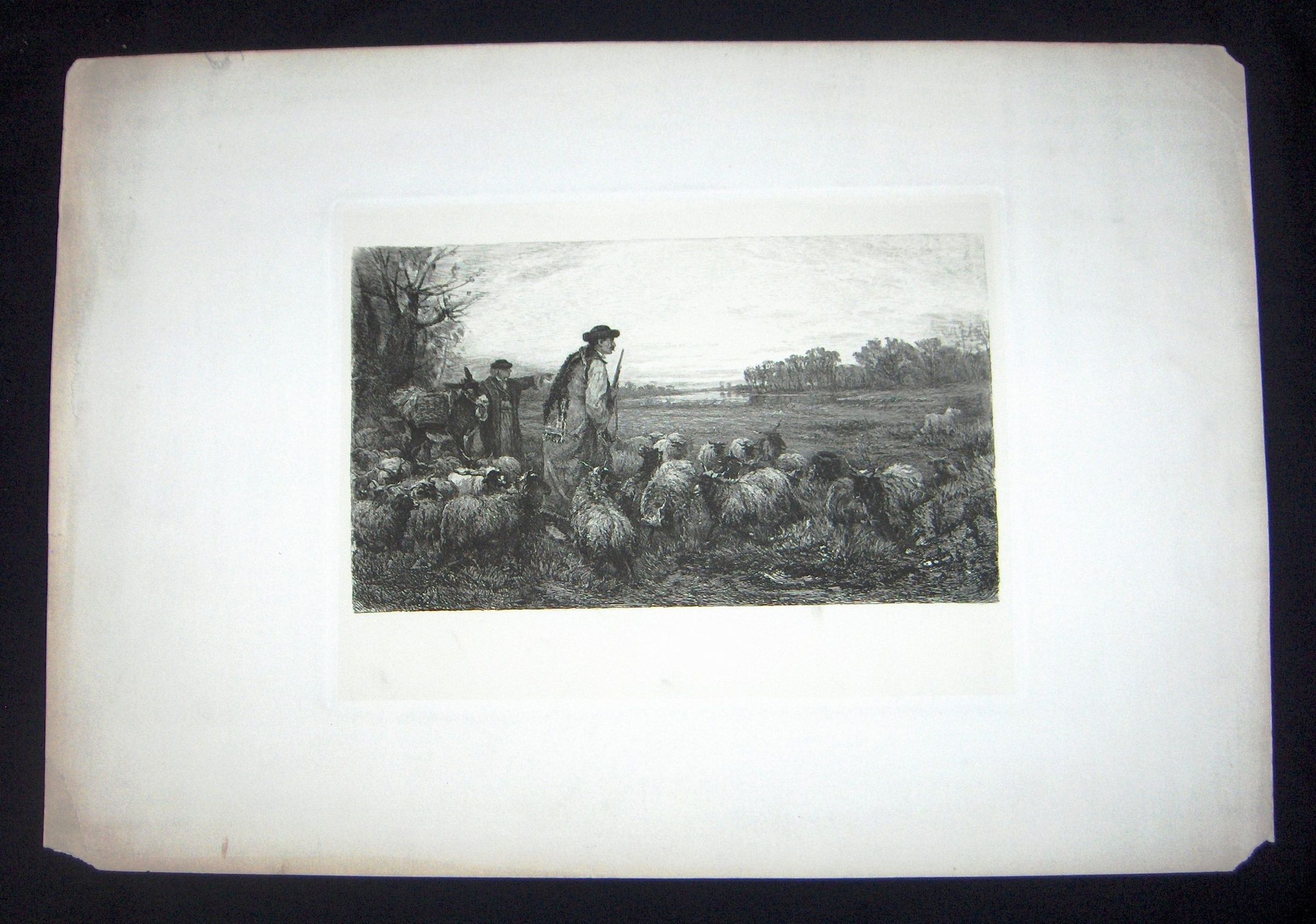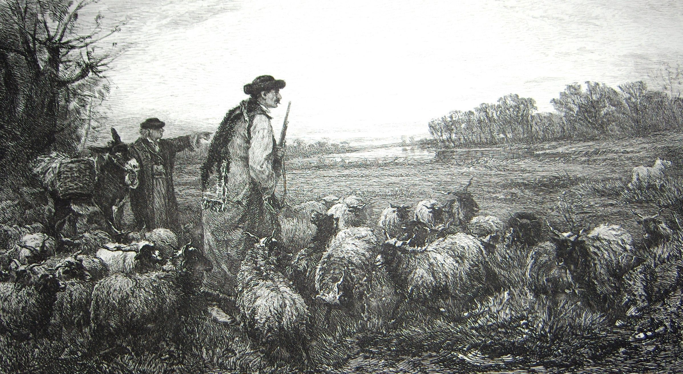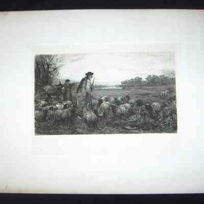 Ink, Paper, Print, Lithograph, Ink, Paper, Print, Lithograph, Shepherds and Sheep, Sheep, Field, GermanDimensions